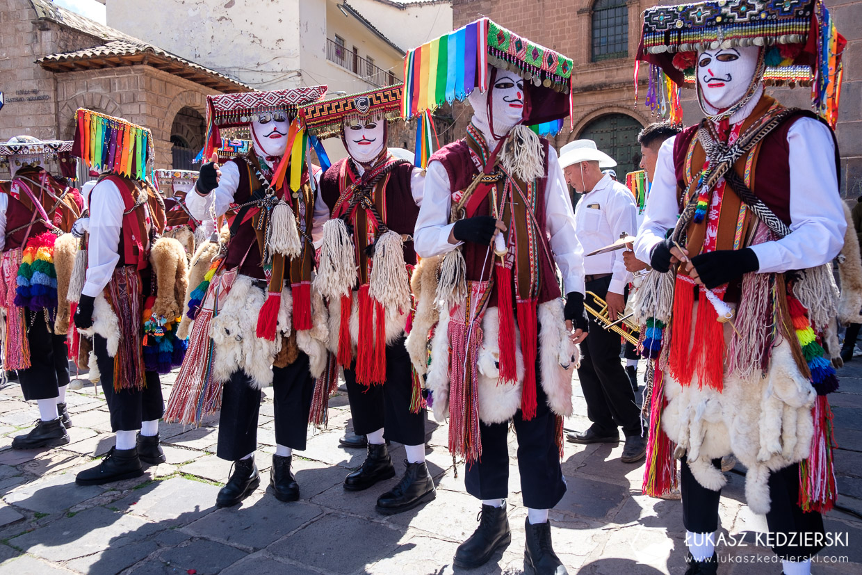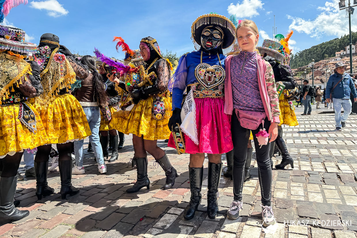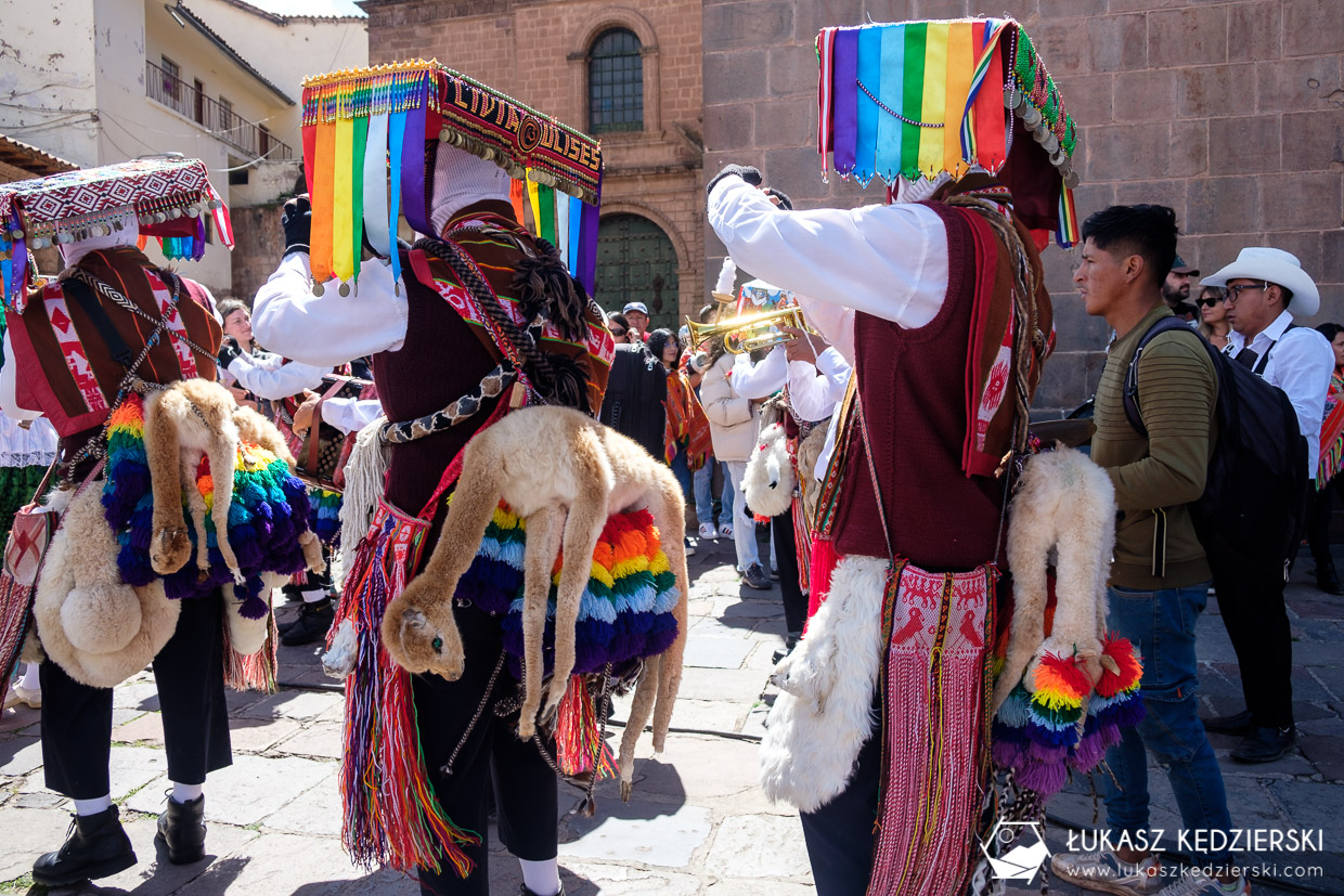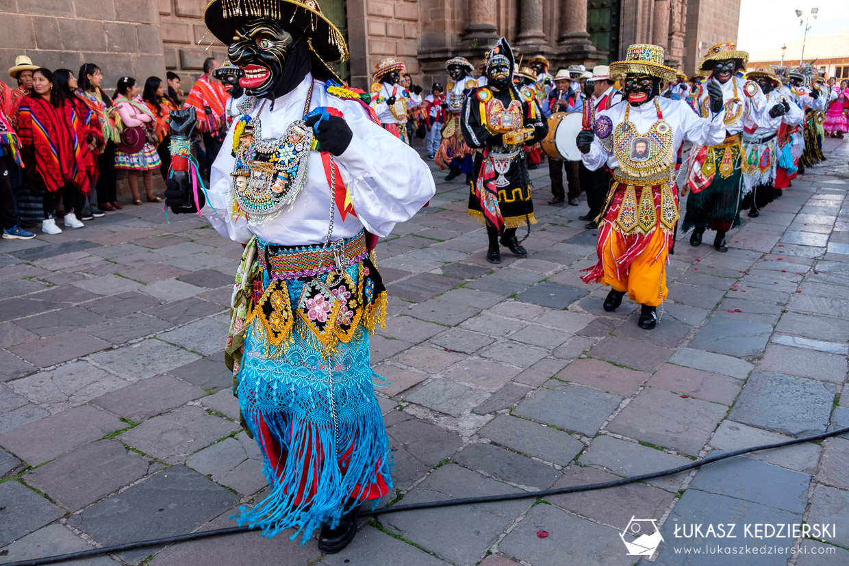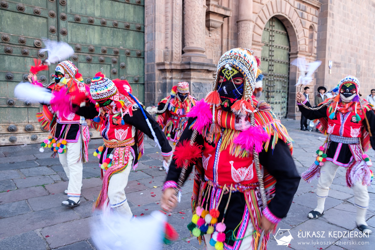 Dzisiaj w Cuzco odbywała się jakaś duża fiesta. Przez główny plac Plaza Del Armas przeszły setki kolorowo ubranych dziewcząt, chłopaków, kobiet i mężczyzn. Mieli różne stroje, różne maski, instrumenty i muzykę. Wszyscy uśmiechnięci pełni zabawy i serdeczności prezentowali swoje umiejętności. Było dużo koloru, dźwięków i radości.