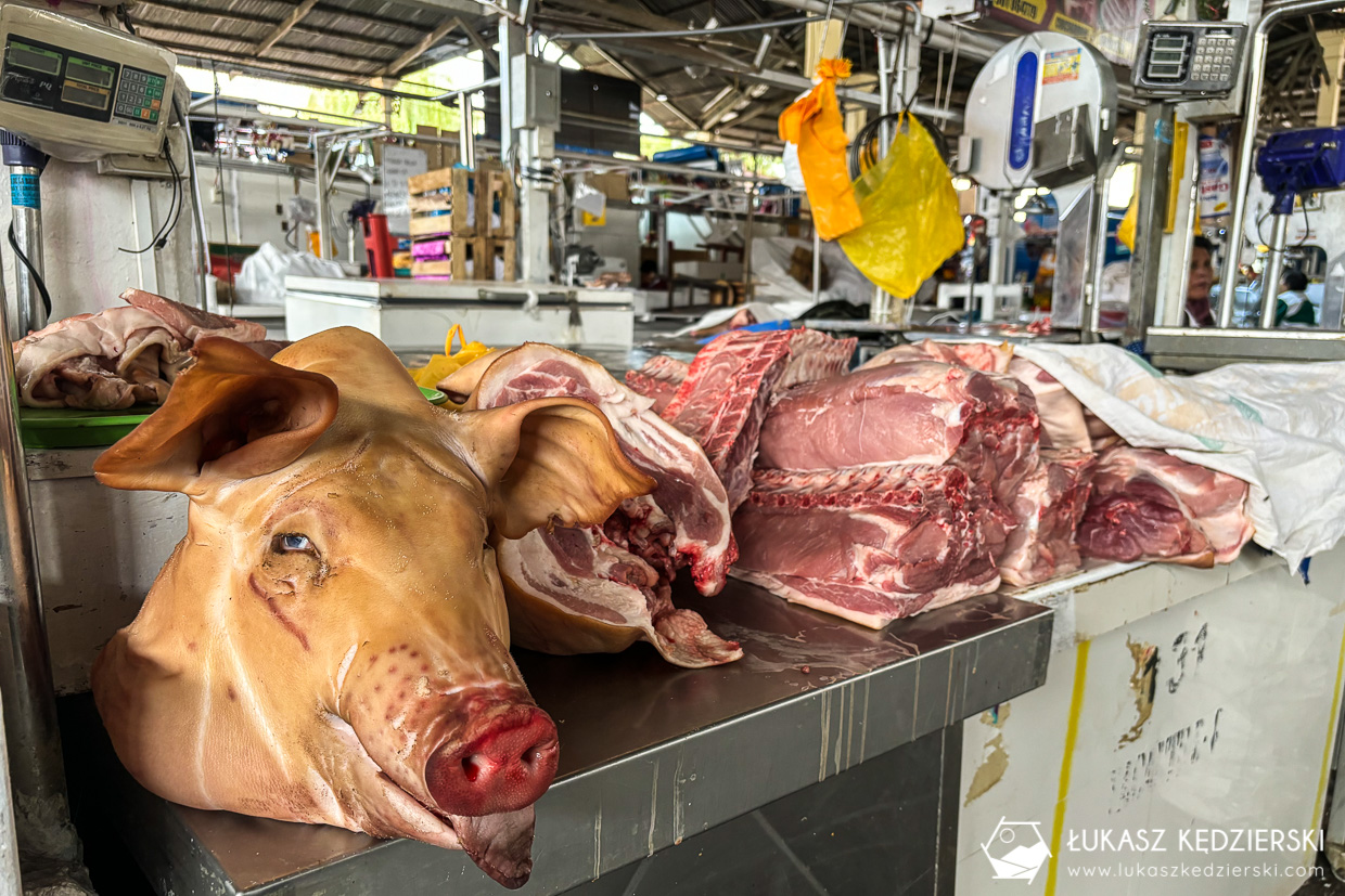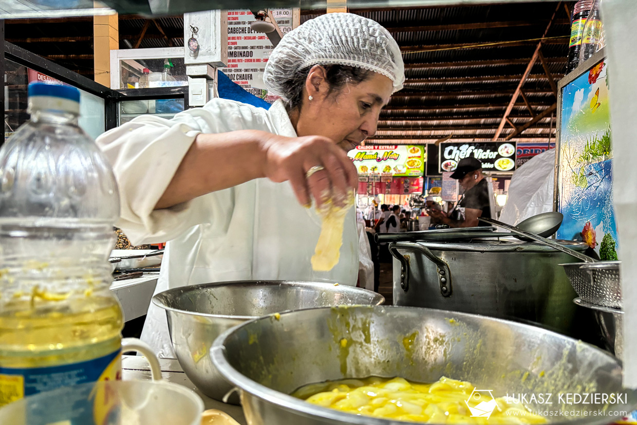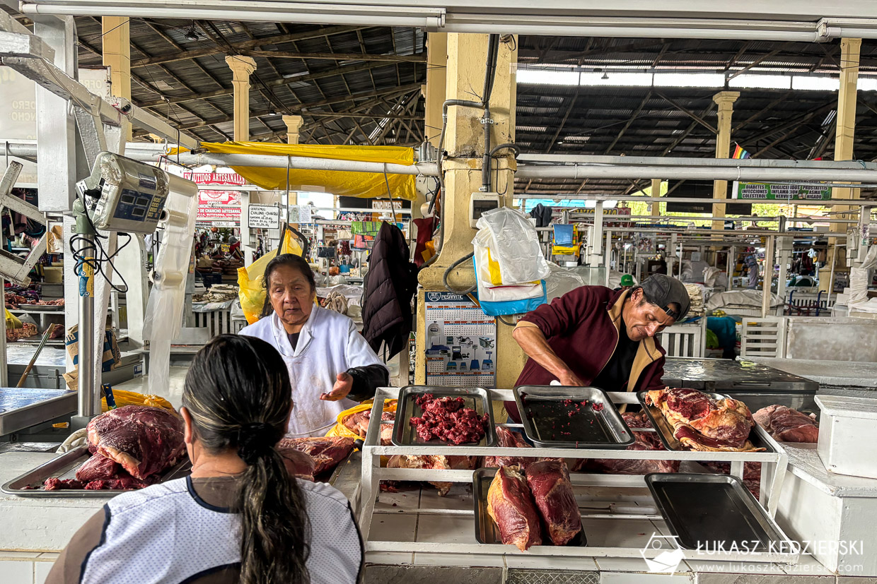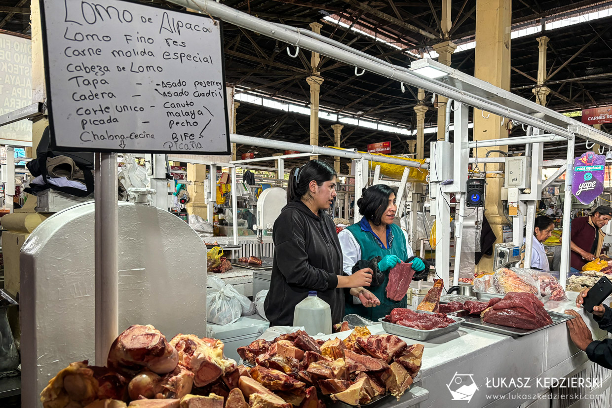 Chcieliśmy pójść na lokalny targ. Lubimy zaglądać w takie miejsca, gdzie można podpatrzeć miejscowych w trakcie ich codziennych zakupów. Targ Mercado de San Pedro nie jest zbyt duży. Dzieli się na dwie umowne częściej: jedzenie, gdzie wpadliśmy na ceviche i kalmary oraz część zakupową. Są tu stragany z owocami, warzywami i ogólnie mówiąc przyprawami oraz dużo stoisk z pamiątkami. Niestety nic sobie tu nie upatrzyliśmy. Wszystko jakieś takie podobne do siebie i niby fajne, ale nie do końca pasuje. Oczywiście było tu parę rarytasów jak ciekawe kubki, koszyki, ale jak to spakować do podręcznego? Spodziewałem się większej różnorodności i wyboru. Miejsce warto zobaczyć i spędzić tu trochę czasu.