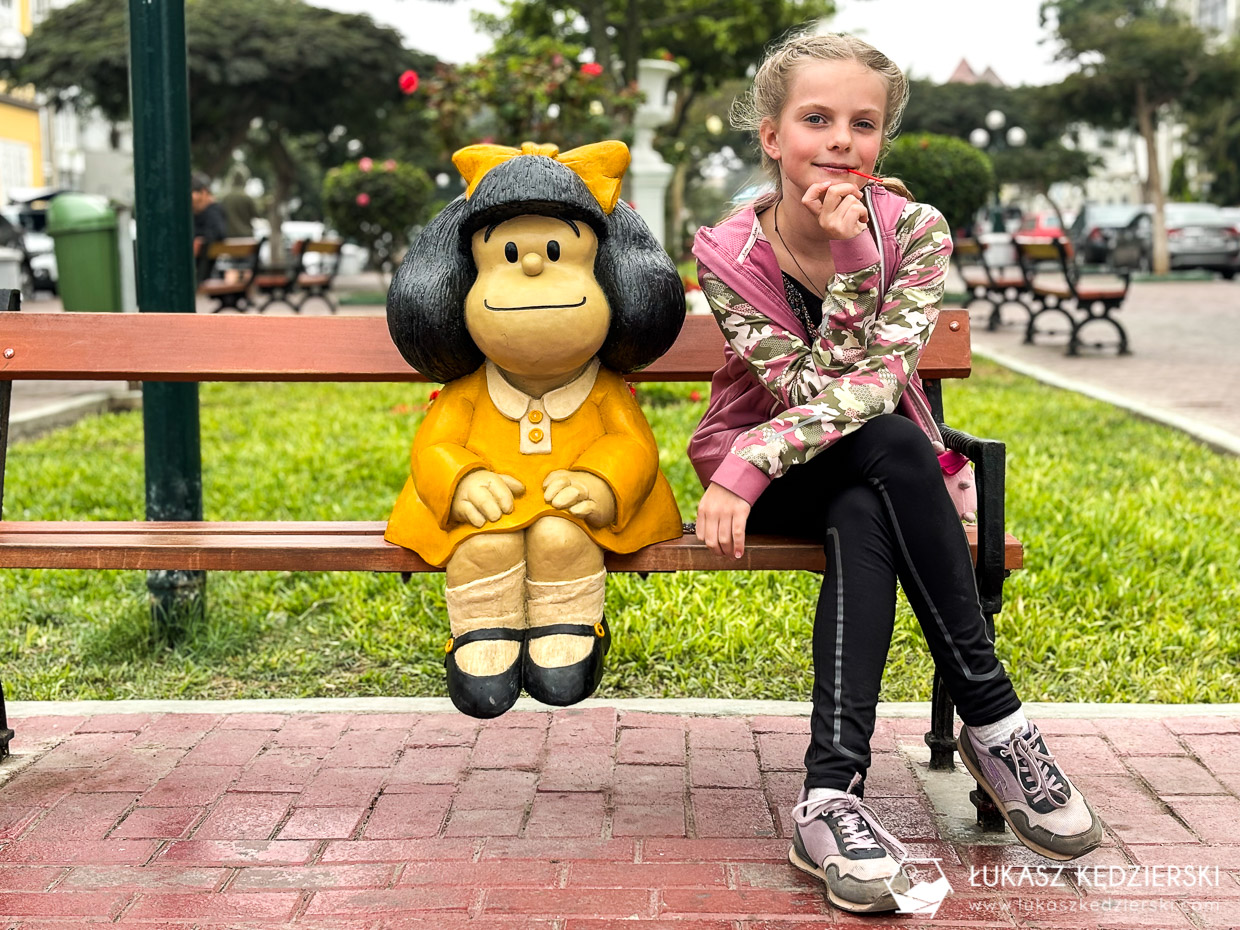 To tętniąca życiem część Limy. Wysokie nowoczesne przeszklone budynki położone nad samym wybrzeżem górują nad wysokim klifem. Bez planu poszliśmy na spacer wzdłuż wybrzeża, które jest wypełnione ciekawymi parkami, oazami ciszy i spokoju. Park Miłości to główny punkt docelowy na turystycznej mapie. Warto zajrzeć do chińskiego parku, upamiętniającego pierwszych chińskich imigrantów w Peru. Można też pójść na zajęcia z jogi lub zorganizować urodziny dla dziecka na świeżym powietrzu. Zajrzeliśmy też do okolicznego skateparku gdzie dzieci i młodzież popisywały się różnymi trickami na rolkach. Chętni mogą także wybrać się na lekcje surfingu.