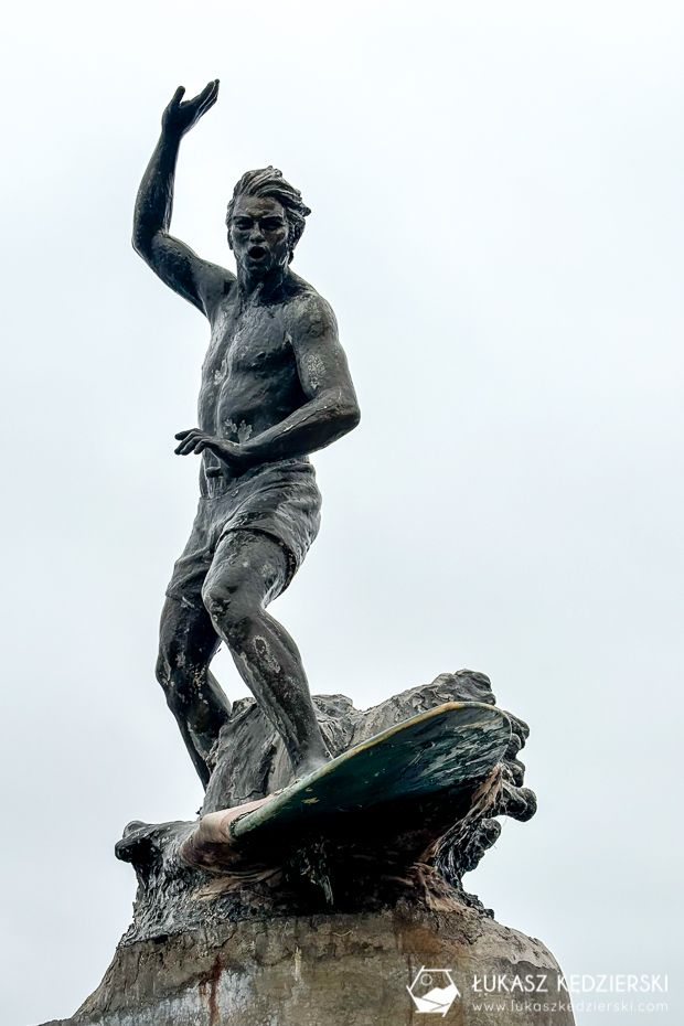 Niestety pogoda była mało wakacyjna, więc tylko trochę posiedzieliśmy na plaży i pomoczyliśmy nogi w oceanie, obserwując surferów. Bardzo fajnie się prezentuje tutejszy krajobraz, szkoda, że nie było słońca a gęste, niskie chmury przysłaniały horyzont.