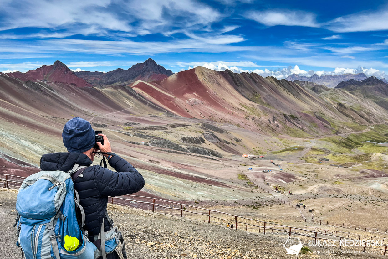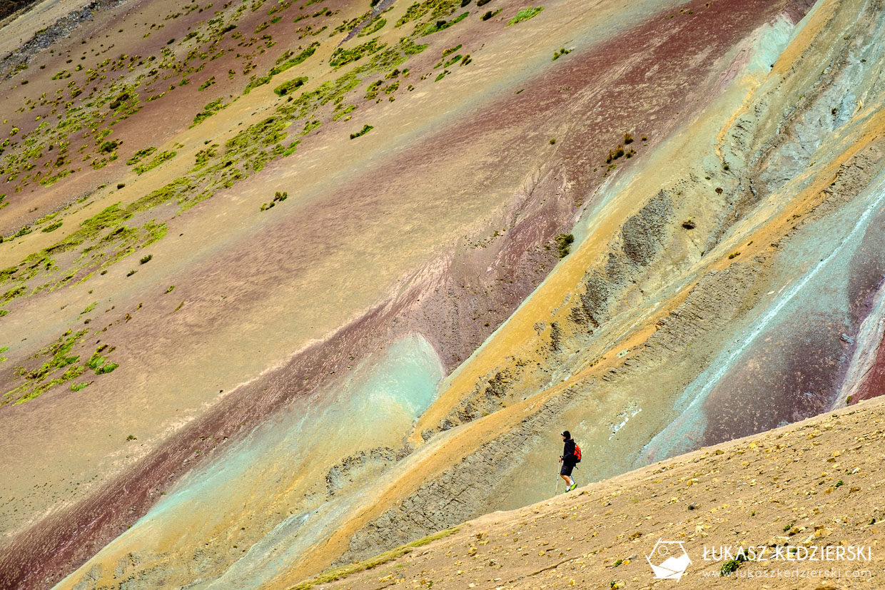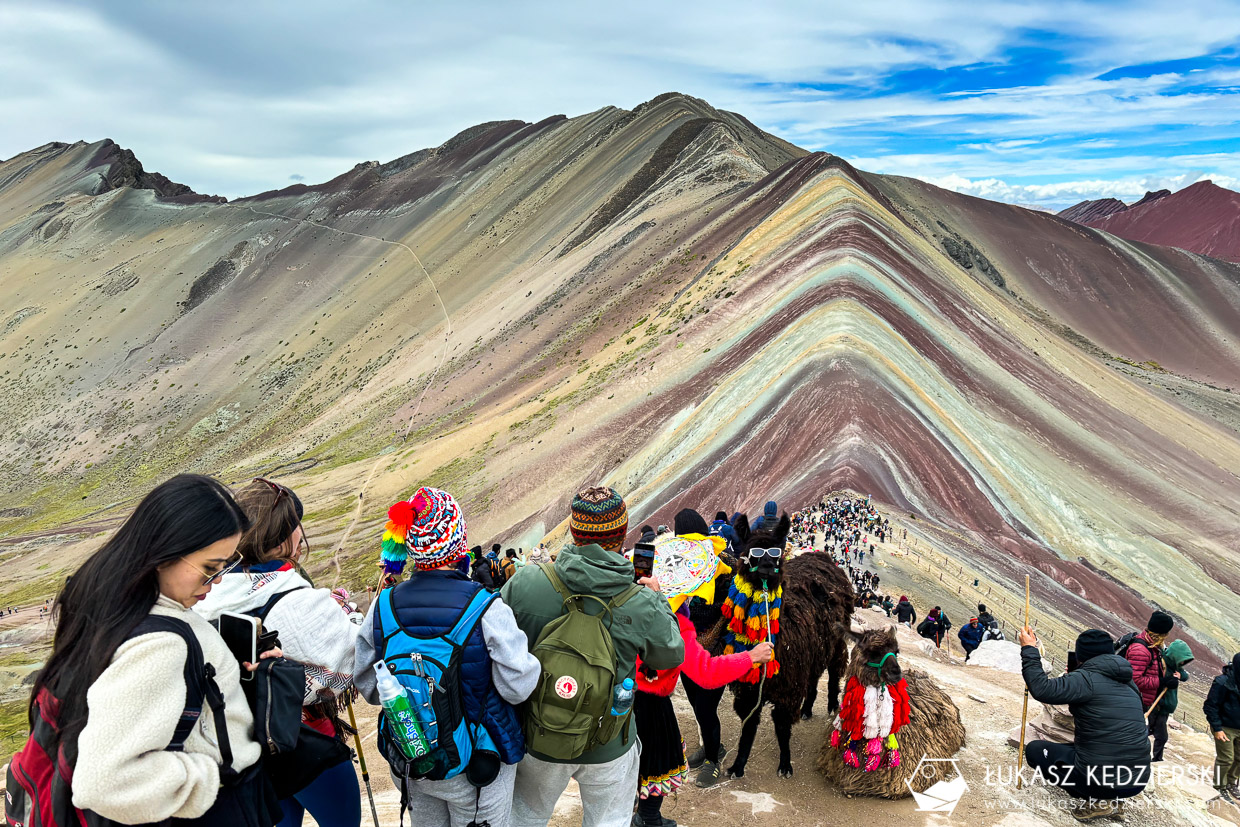 Ze szczytu i punktu widokowego poniżej można podziwiać okoliczne szczyty i doliny. Niektóre są bardzo kolorowe inne mniej. Było sporo ludzi i alpak, gotowych do zdjęć. Wracając do kolorów, wszystko zależy, jak padało światło, natomiast to na pewno nie są one aż tak intensywne jak na zdjęciach w katalogach 😉.