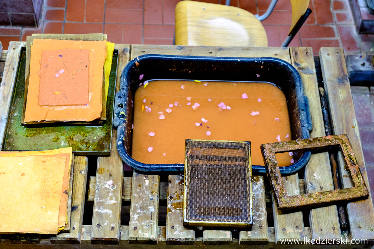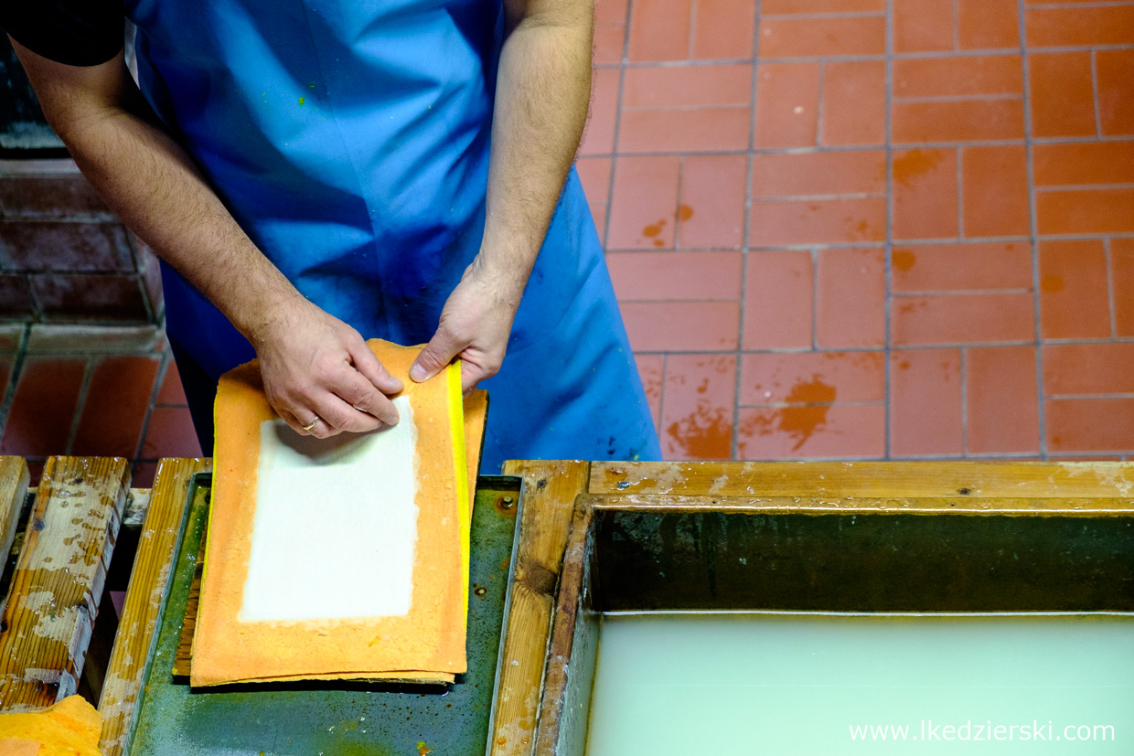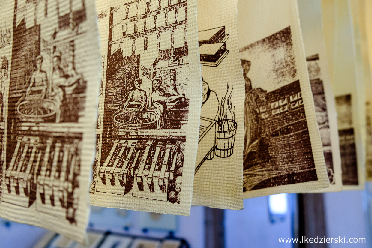 Mieli rację. Z zewnątrz to przepięknie prezentujący się budynek. Poszczególne sale są bogate w interesujące eksponaty i przedmioty służące do oceny różnych atrybutów papieru: grubość, gramatura, jakość. Możemy zobaczyć i poznać średniowieczne techniki czerpania papieru, dowiedzieć się o szczegółach tego procesu. Najmłodsi sami mogą wziąć udział w warsztatach, podczas których wykonają prawdziwą kartkę. Wiedza, niesamowity profesjonalizm Pana, który z olbrzymią pasją opowiadał o historii papieru, potrafi zainteresować wszystkich.