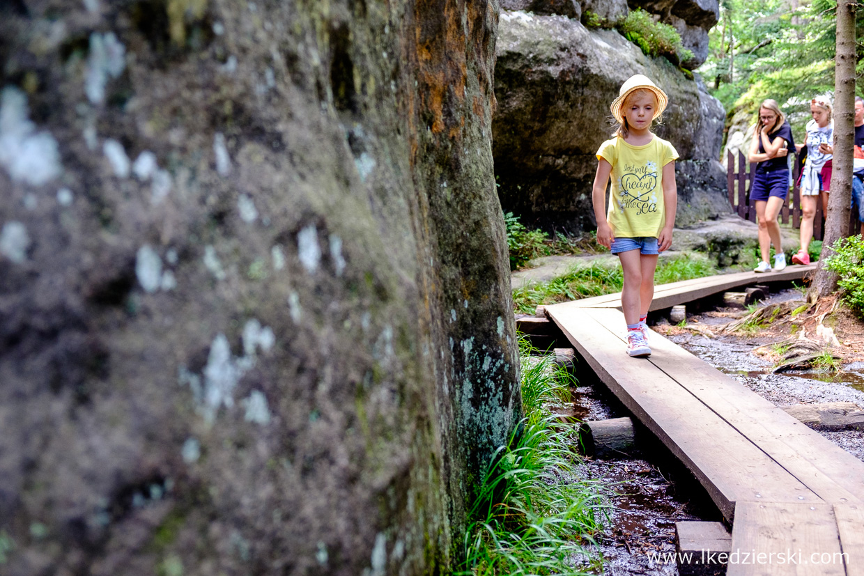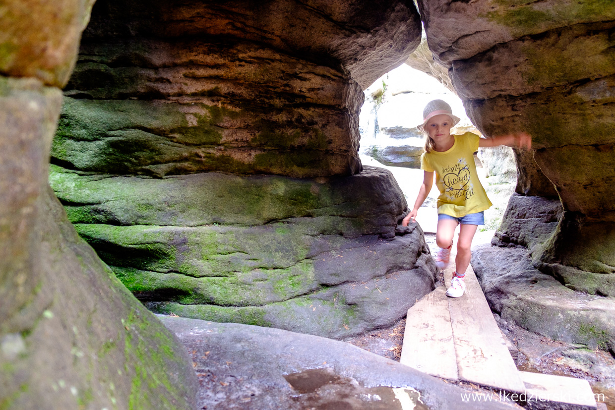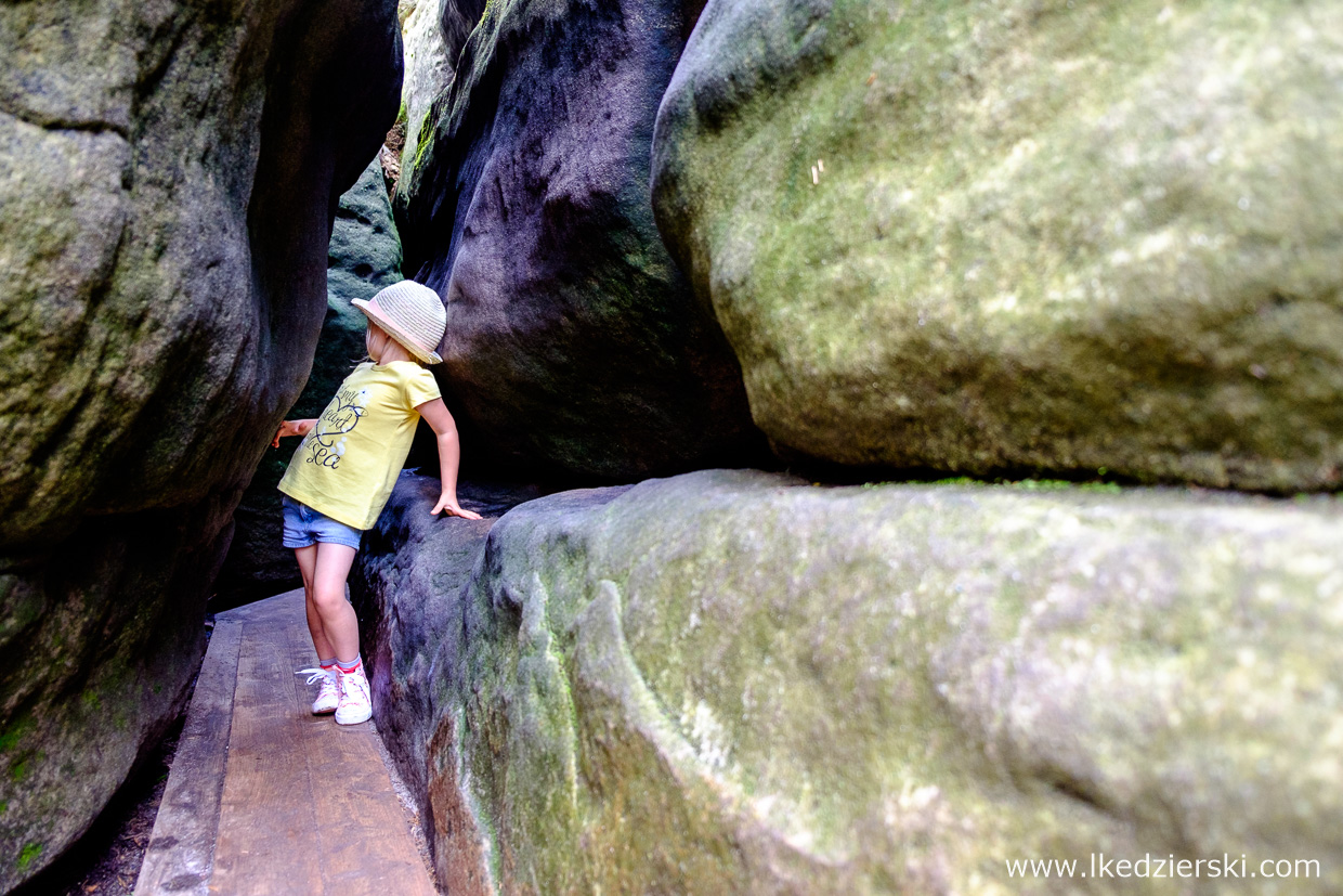 Na szlaku możemy odnaleźć kilkanaście skał, których kształty przypominają stół, okręt czy grzyba, więc wyobraźnia u wszystkich odwiedzających jest bardzo pobudzona. W Błędnych Skałach byłem pierwszy raz kilkanaście lat temu i wtedy bawiłem się jak dziecko. Tym razem było dokładnie tak samo. Zabawa w wąskich przesmykach jest naprawdę ciekawa! Dorośli, młodzież czy dzieci spędzą tu miło czas.