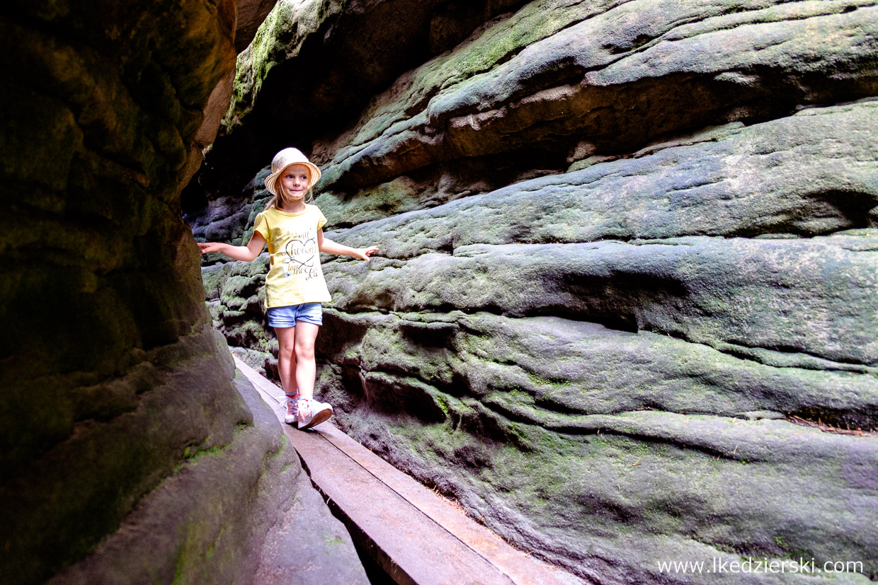 Pewnie każdy z Was lubi skalne miasta, labirynty, ciasne przejścia pomiędzy skałami. Nie sposób napisać o aktywnych atrakcjach Dolnego Śląska bez wspominania o Błędnych Skałach. To niewielka grupa skał położona w Parku Narodowym Gór Stołowych. Pomiędzy nimi wytyczony jest jednokierunkowy szlak. Czasami to obszerna ścieżka z pięknymi widokami, a w innym miejscu to bardzo wąziutkie (kilkadziesiąt centymetrów szerokości) przejście ograniczone skałami. W oddali słychać śmiech, żarty, sapanie i „pozytywne narzekania”. Najgłośniej cieszą się dzieci, gdy ich rodzice w tych najwęższych miejscach mają niewielkie problemy z przeciśnięciem się. Wszystko w atmosferze zabawy, żartów i radości.