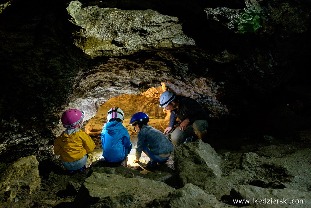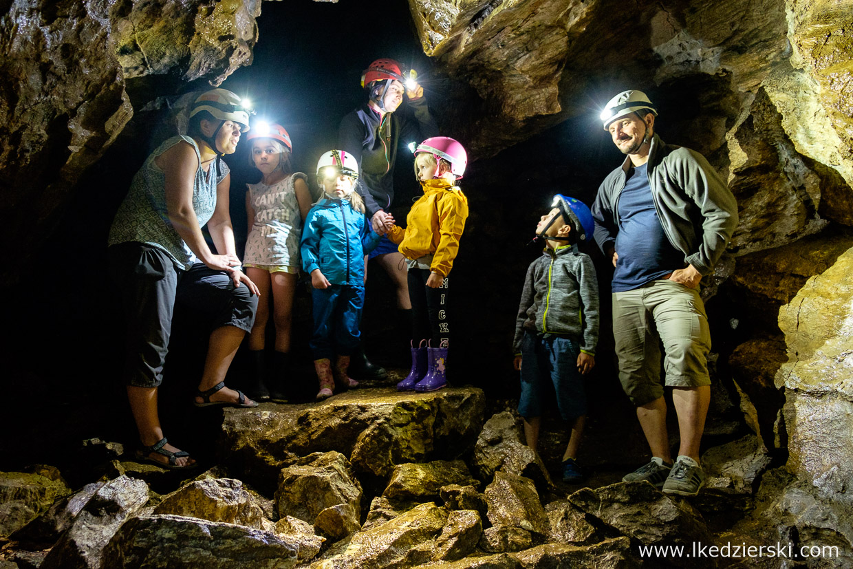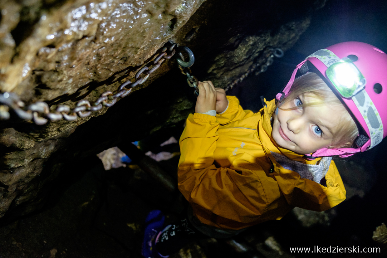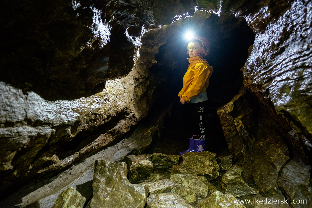 Na czas zwiedzania dostaniecie kask, oświetlenie i bardzo sympatycznego przewodnika, który pokaże, wytłumaczy i przeprowadzi Was przez czeluści jaskini. Trasa ma zaledwie 300 metrów, lecz to doskonała okazja, aby doświadczyć czegoś innego. W środku jest wilgotno, przyjemnie chłodno i zupełnie nieturystycznie. Wasze dzieci będą bardzo zadowolone z eksploracji prawdziwej jaskini. Rączki mogą się trochę ubrudzić błotem, czasami będzie trzeba przejść przez ciaśniejsze miejsce – atrakcji co niemiara.