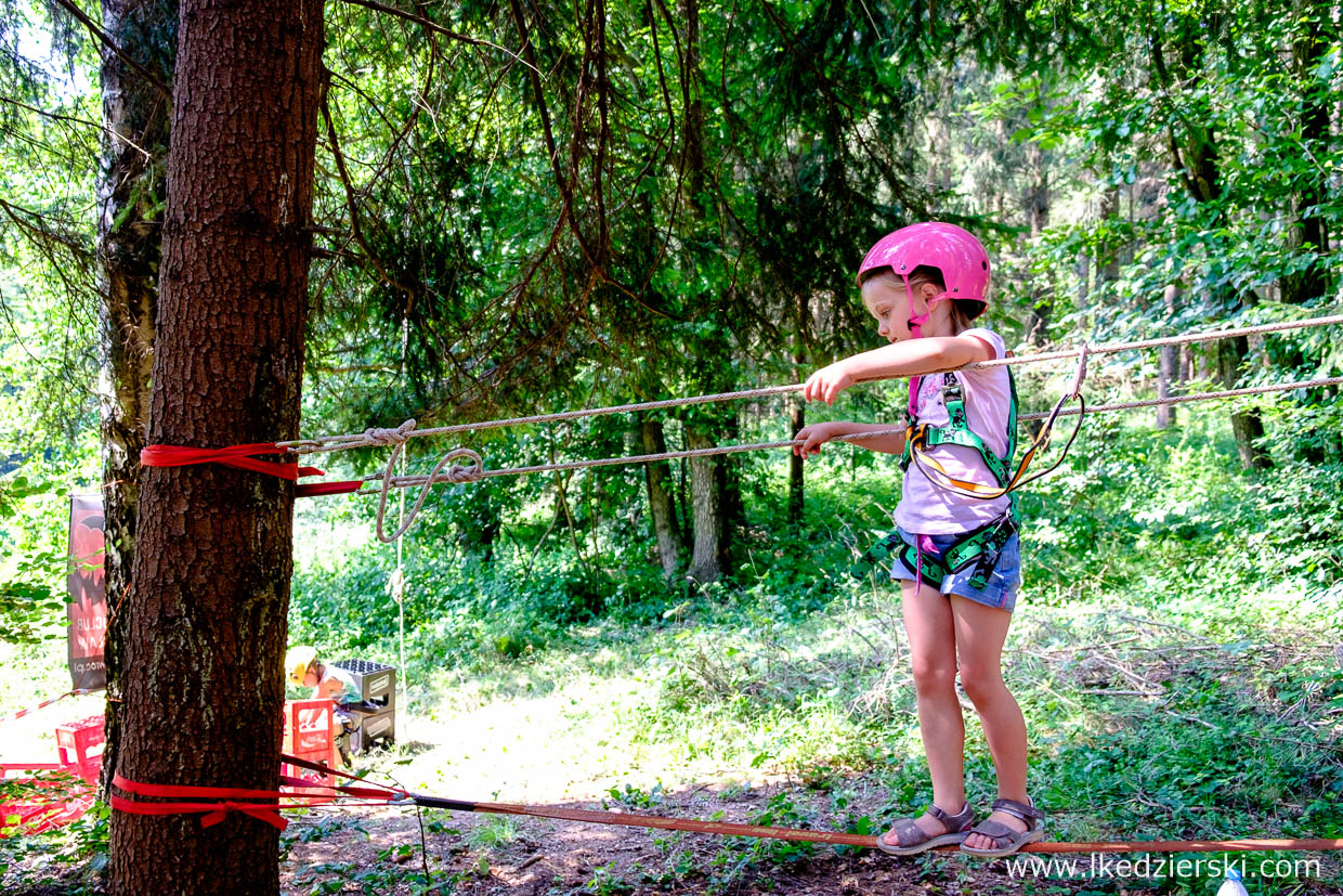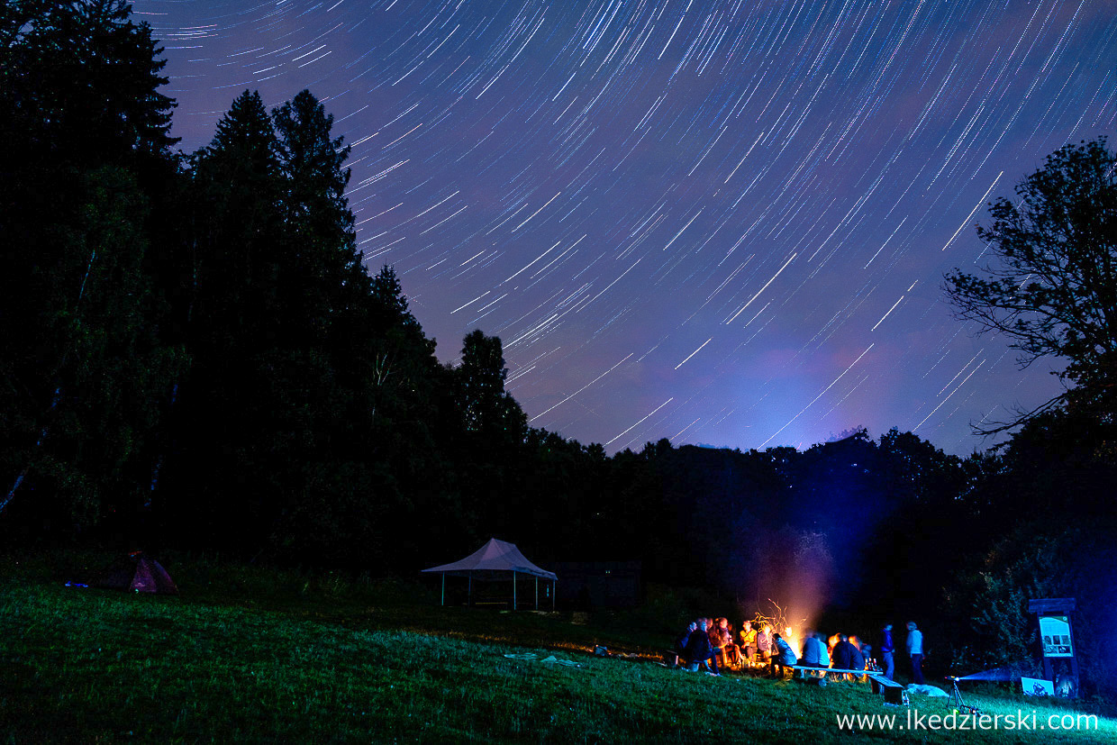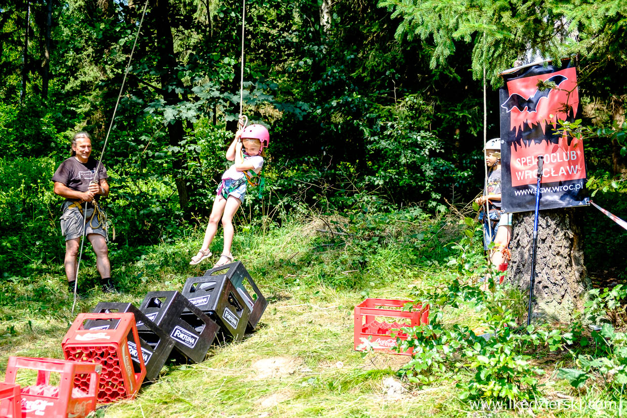 Wybierając się do Jaskini Radochowskiej, celowaliśmy w termin imprezy organizowanej przez mój klub jaskiniowy SpeleoClub Wrocław. SPELEORozpoczęcie Wakacji to rodzinna atrakcja dla każdego. W trakcie każde dziecko może skorzystać ze specjalnie przygotowanego przez klubowiczów parku linowego, wejść z nami do jaskini, zobaczyć filmy o tematyce jaskiniowej. Wieczorem upiec pyszną kiełbasę z ogniska, zintegrować się z klubem i przenocować w „hotelu z milionem gwiazd”. Interesujące rozmowy trwały do samego rana.