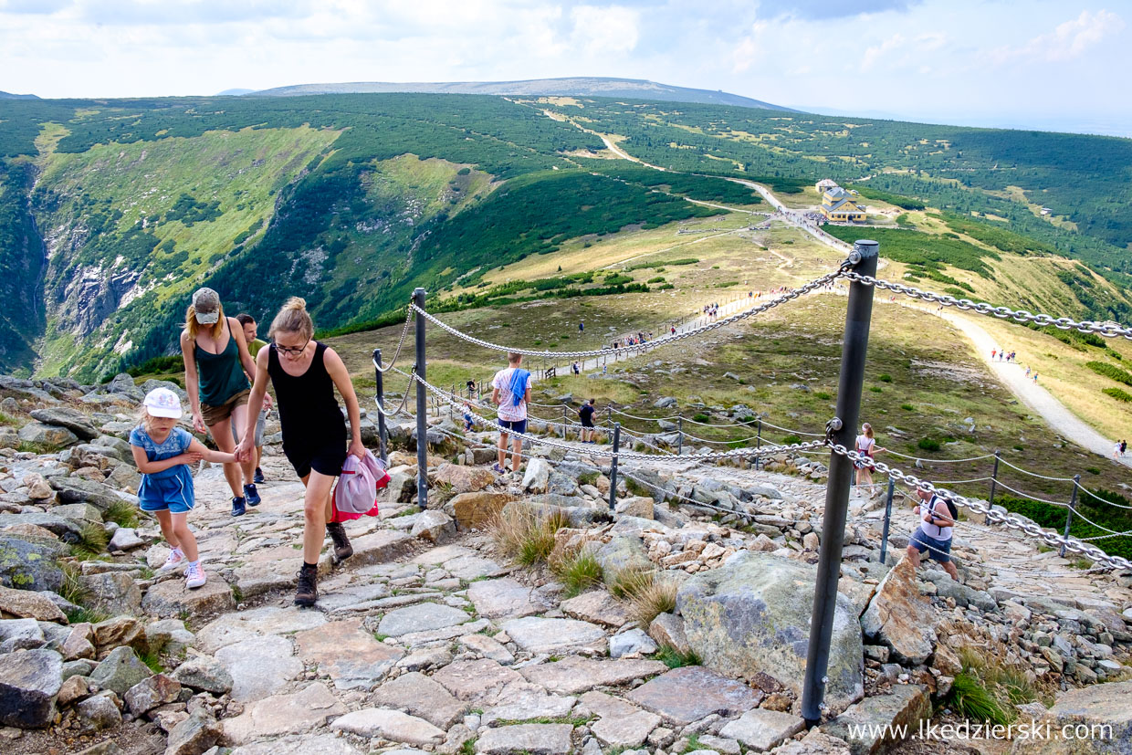 • wersja dla leniuchów: kolejką gondolową od strony czeskiej z Pec pod Sněžkou