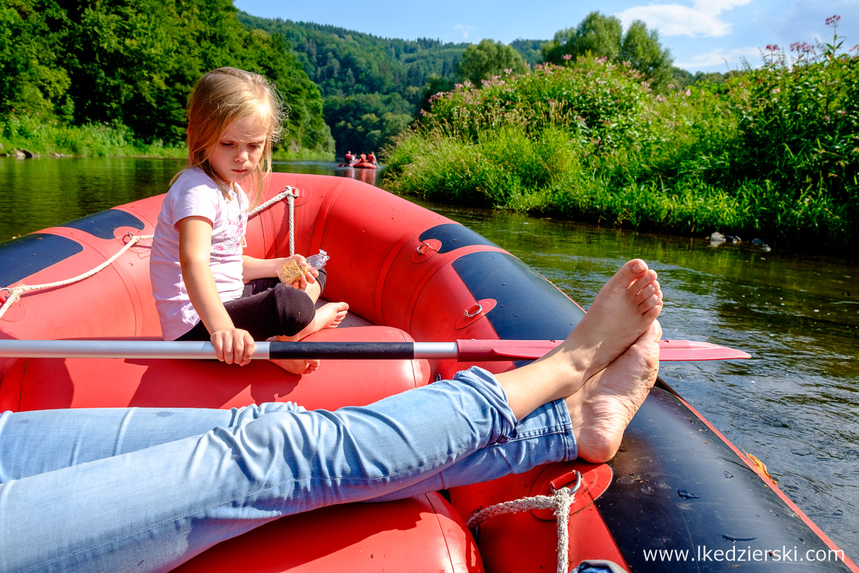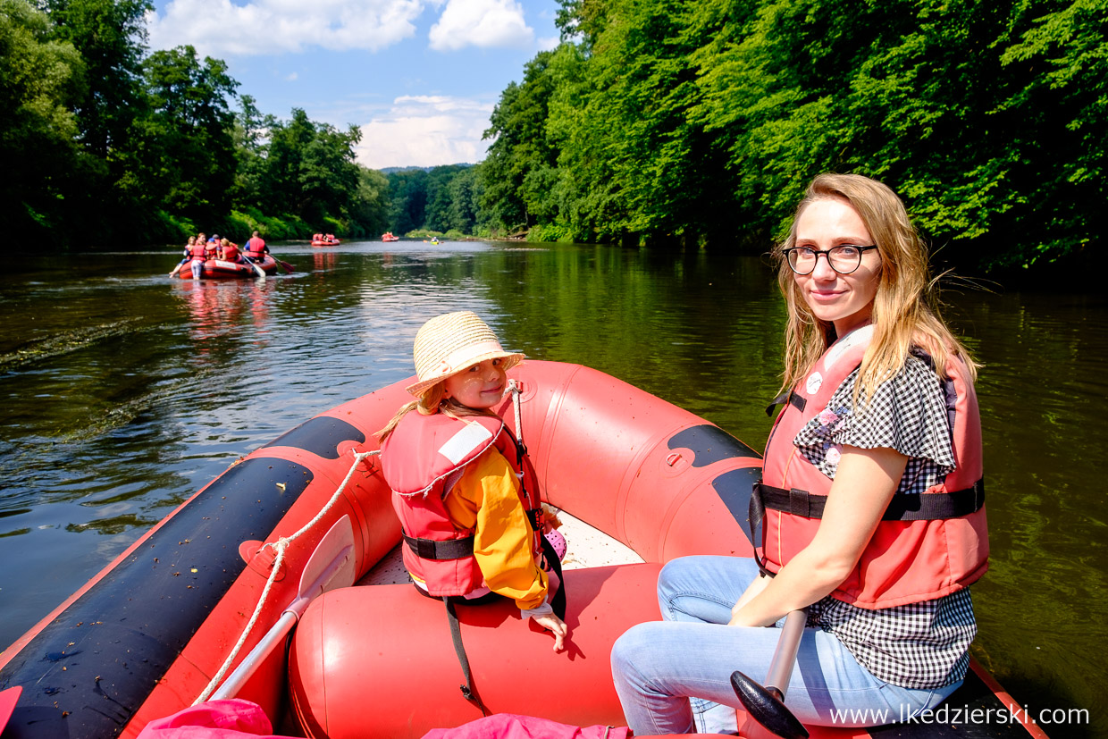 Chodzenie po górach, zwiedzanie jaskiń, wspinaczka skalna, czy odkrywanie drogi wyjścia w labiryncie już było. Przyszedł czas na wodę. Szukając aktywnych atrakcji na Dolnym Śląsku, znaleźliśmy możliwość spłynięcia pontonem Przełomem Bardzkim. W okolicach Barda rzeka jest dosyć płytka i zdecydowanie bardzo spokojna, zatem jak macie w głowach mrożące krew w żyłach filmy z raftingu na górskich szalejących rzekach to zdecydowanie nie to.