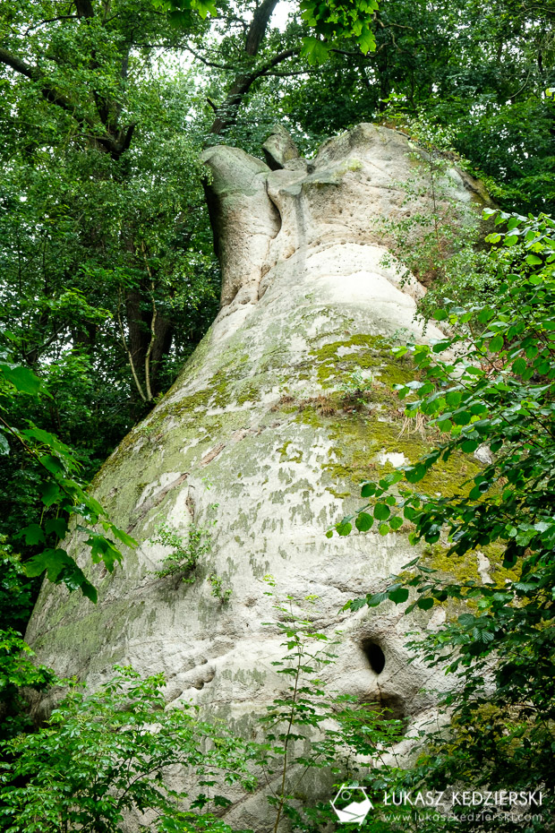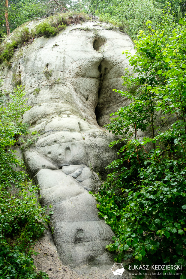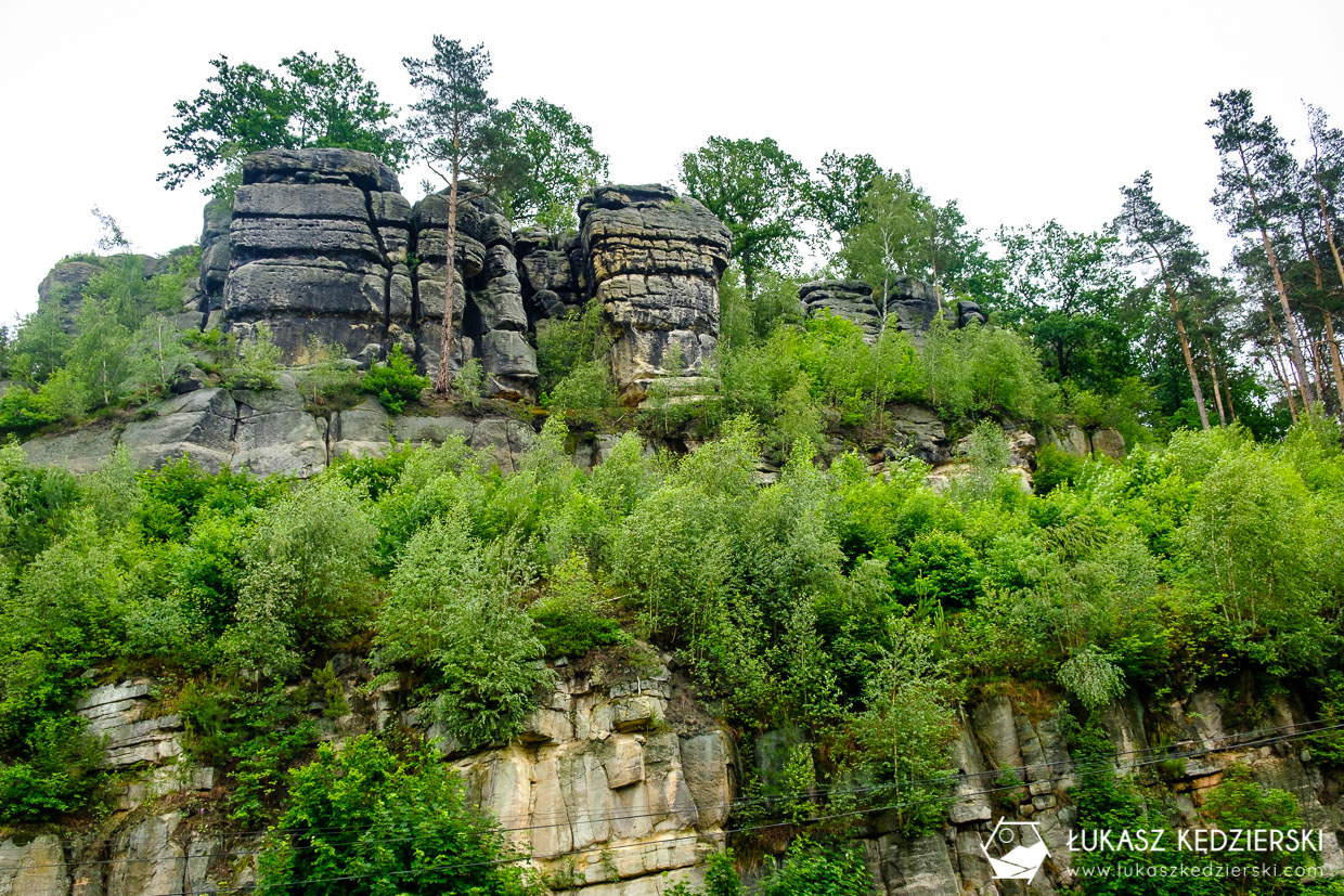 Pomimo że w trakcie weekendu mieliśmy dosyć deszczową pogodę, to wybraliśmy się na spacer wzdłuż rzeki Kwisa. Nasza wycieczka startuje na zamku, a punktem docelowym była skała o oryginalnej nazwie „Tyłek/Pupa Słonia”. Głównie za sprawą tej nazwy Nadia koniecznie, chciała przekonać się, co to za miejsce i jak wygląda. Zgodnie z mapą, po przejściu mostu idziemy ścieżką w lesie orograficznie po lewej stronie rzeki Kwisa, aby po kilku minutach dojść do starej elektrowni wodnej w Kliczkowie. Jednak nie to nas interesowało, a położone kilkanaście minut dalej dwie skały o nazwie „Dzban” oraz „Tyłek Słonia” lub czasami nazywaną „Pupa Słonia”. Poniższe zdjęcia powinny rozwiać Wasze wątpliwości skąd takie nazwy prawda?