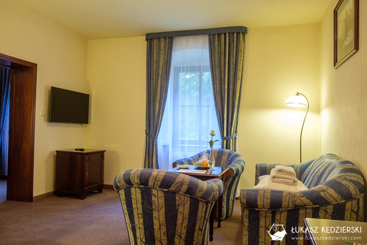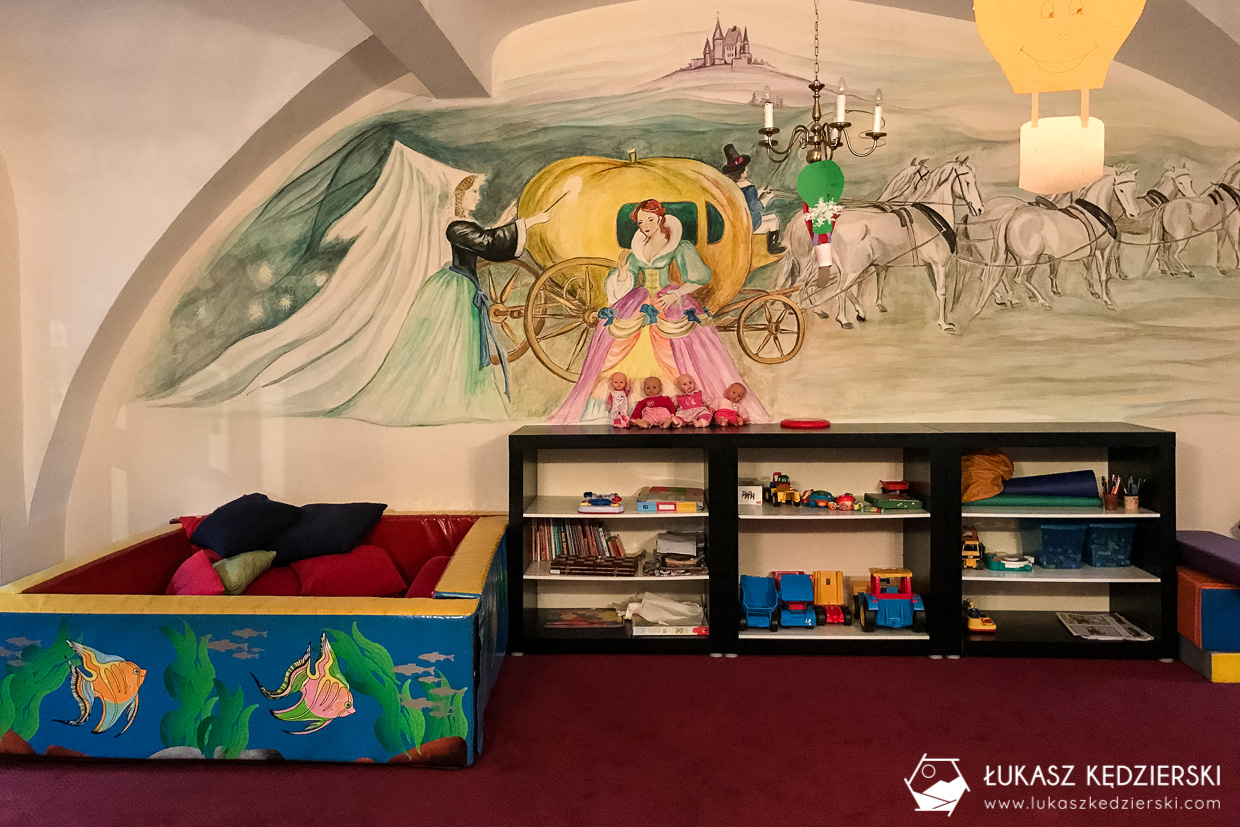 Chcieliśmy poczuć zamkowy klimat, bo to, co jest najciekawsze w tym miejscu to fakt, że wszystko na zamku odbywa się w normalnych zamkowych salach. Zatem jedzenie serwowane jest w jednej z kilku wielkich sal z pięknymi zdobieniami. W takich wnętrzach od razu smakuje lepiej prawda? Możemy spać w komnacie cesarskiej, wieczorami skoczyć na drinka do zamkowych podziemi lub odwiedzić basen, który powstał w starej ujeżdżalni. Nocą natomiast przechadzać się zamkowymi korytarzami w poszukiwaniu duchów poprzednich właścicieli.