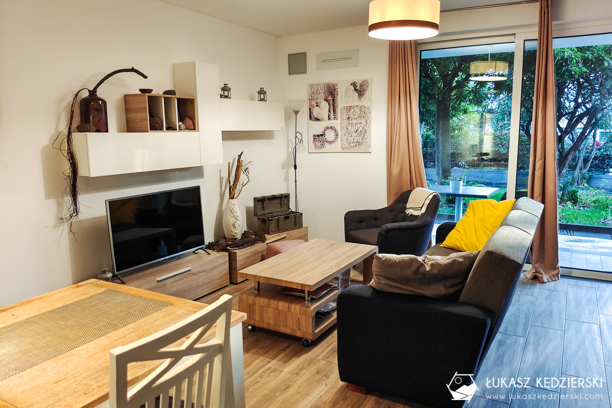 W apartamencie było wszystko, co potrzeba: sypialnia, salon z w pełni wyposażonym aneksem kuchennym, łazienka z prysznicem. Na zewnątrz był ogród, gdzie znajdował się kamienny grill. Koszt to ok. 379 zł za noc zależnie od terminu.