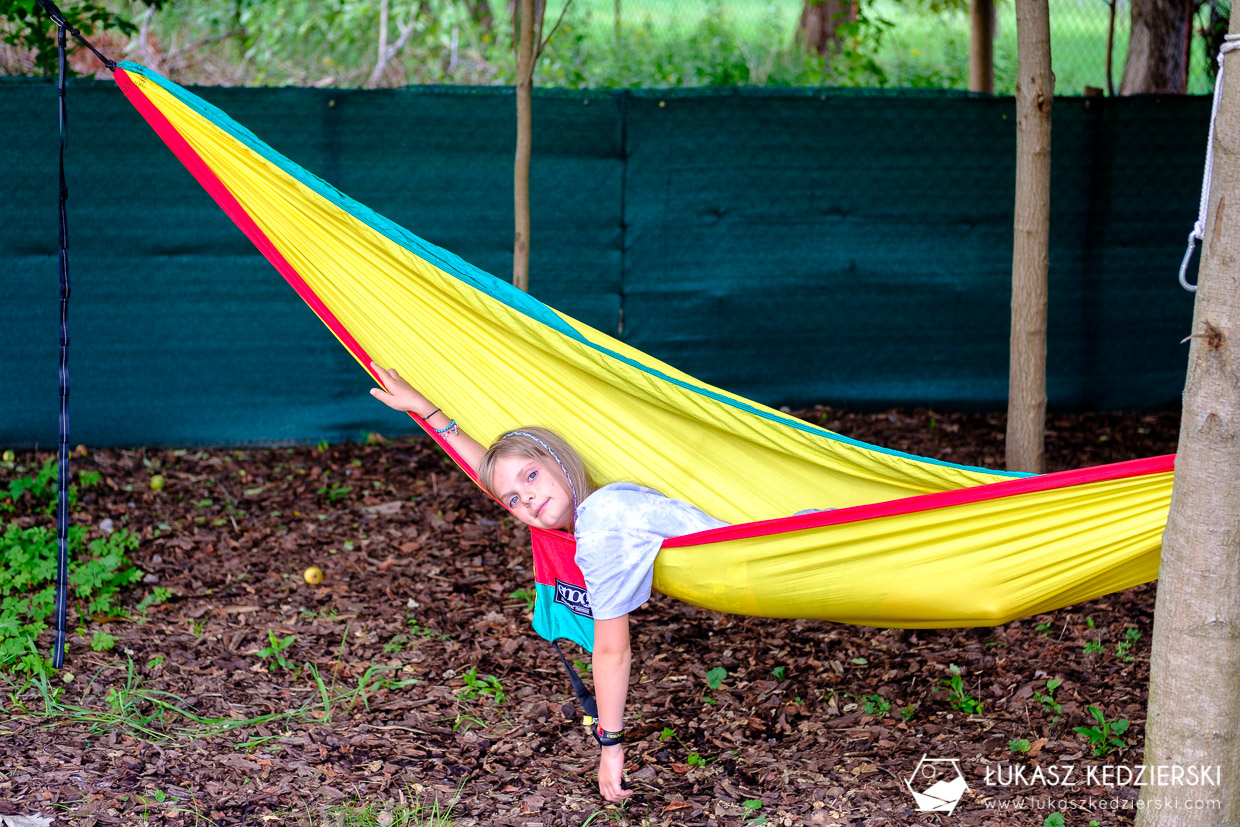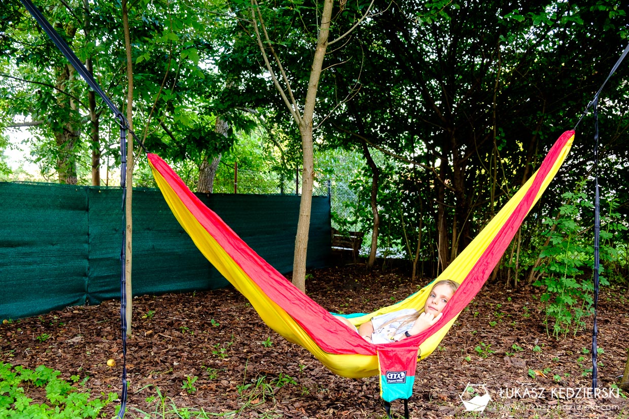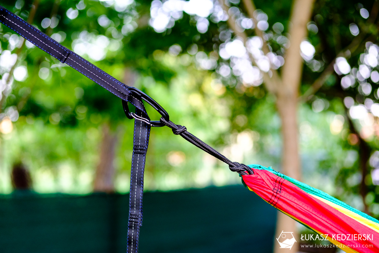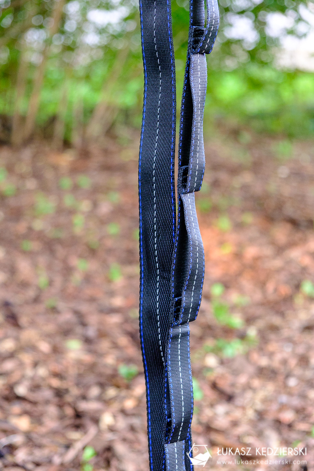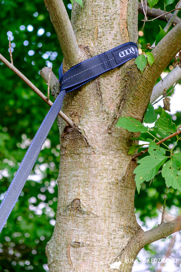 Tak jak wcześniej pisałem, powieszenie hamaka dzięki paskom Eno Atlas zajmuje dosłownie chwilę i każdy, nawet dziecko sobie z tym poradzi. Nadia bez problemu mogła powiesić samodzielnie hamak. Paski w żaden sposób się nie zsuwają i przede wszystkim nie szkodzą konarowi drzewa. Dzięki licznym oczkom, bez problemu możemy w łatwy sposób regulować wysokość i napięcie rozwieszonego hamaka. Wystarczy przepiąć karabinek w inne oczko.
