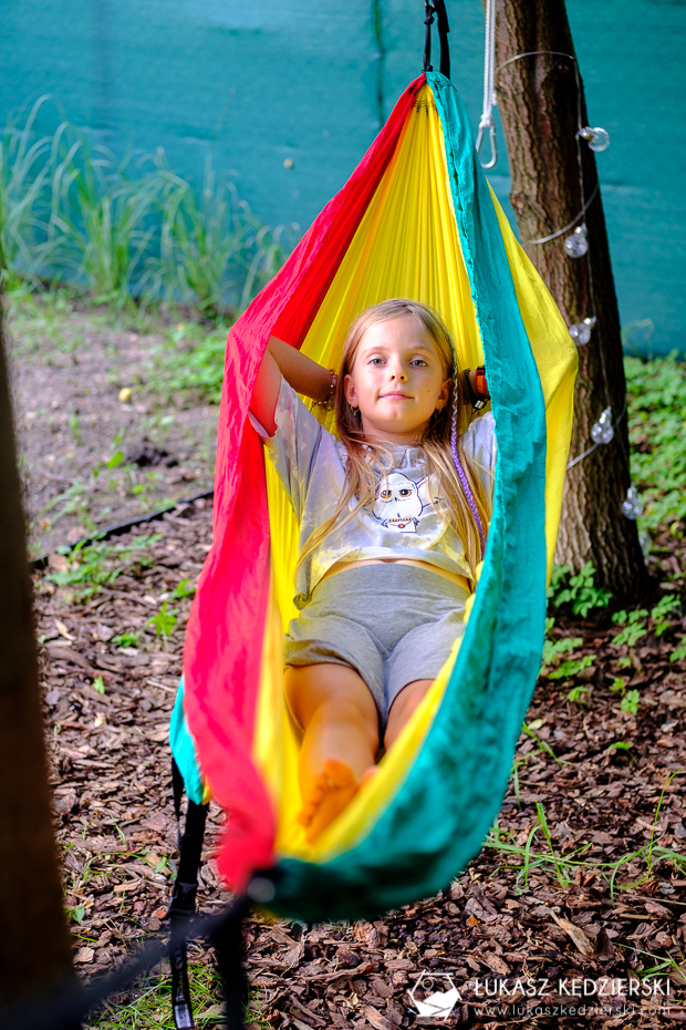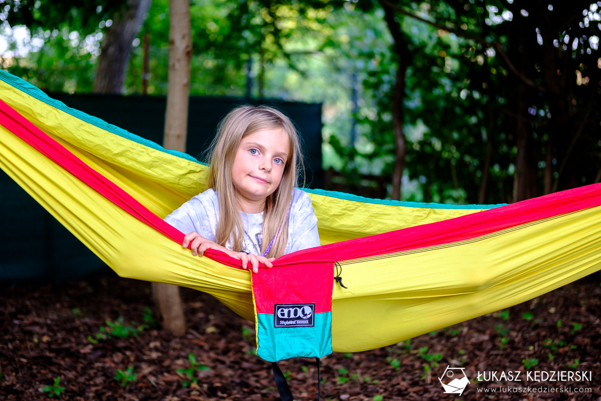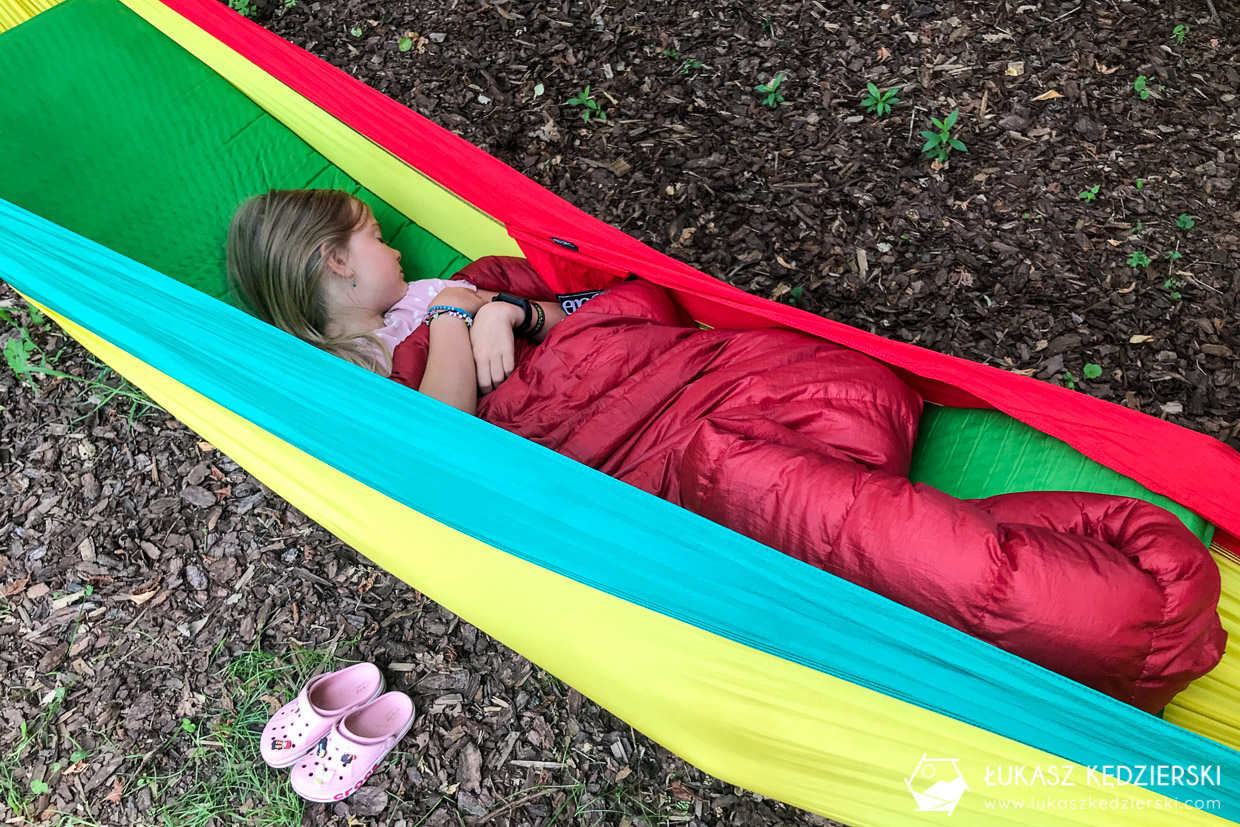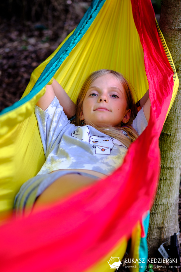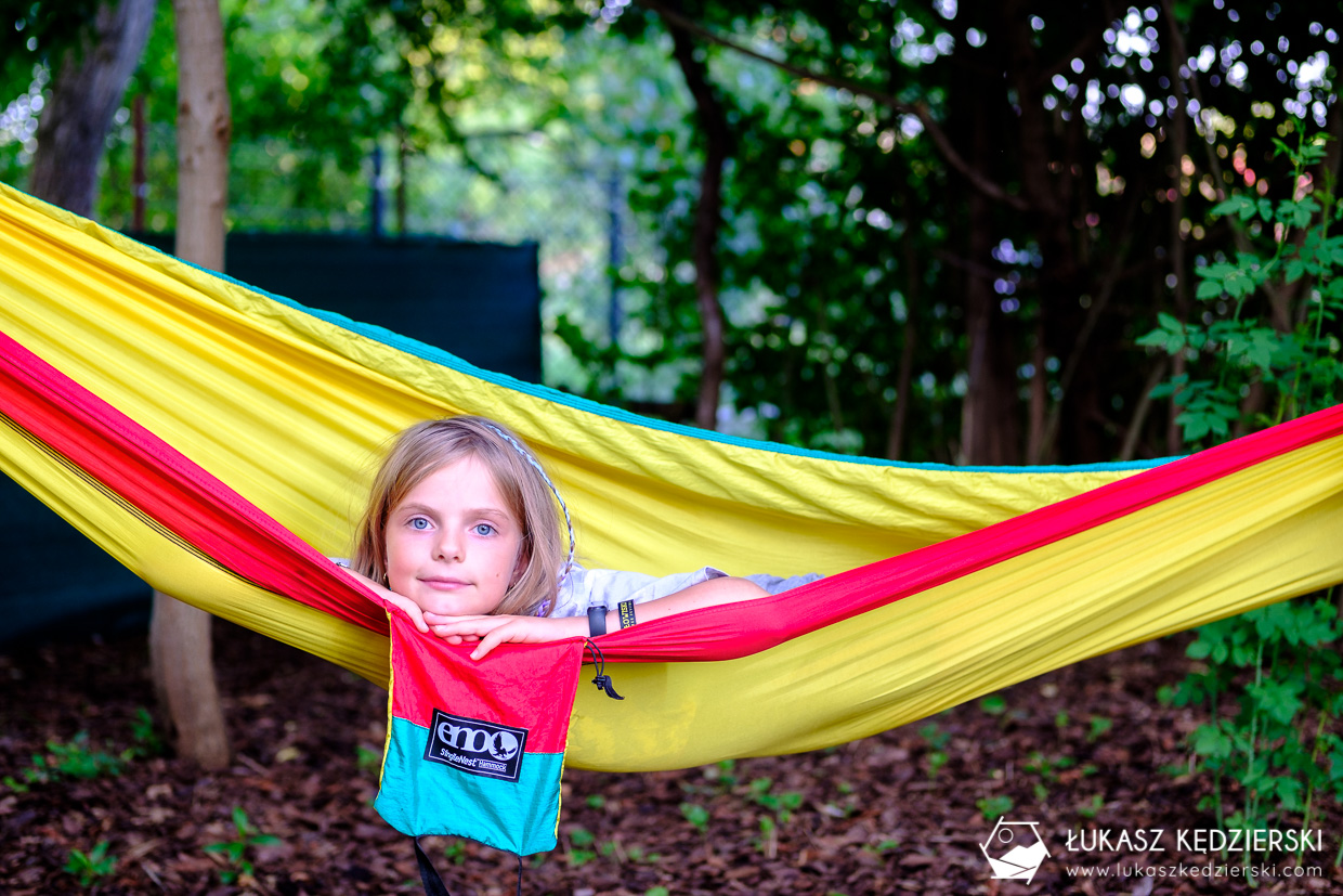 Tak jak wcześniej pisałem, powieszenie hamaka dzięki paskom Eno Atlas zajmuje dosłownie chwilę i każdy, nawet dziecko sobie z tym poradzi. Nadia bez problemu mogła powiesić samodzielnie hamak. Paski w żaden sposób się nie zsuwają i przede wszystkim nie szkodzą konarowi drzewa. Dzięki licznym oczkom, bez problemu możemy w łatwy sposób regulować wysokość i napięcie rozwieszonego hamaka. Wystarczy przepiąć karabinek w inne oczko.