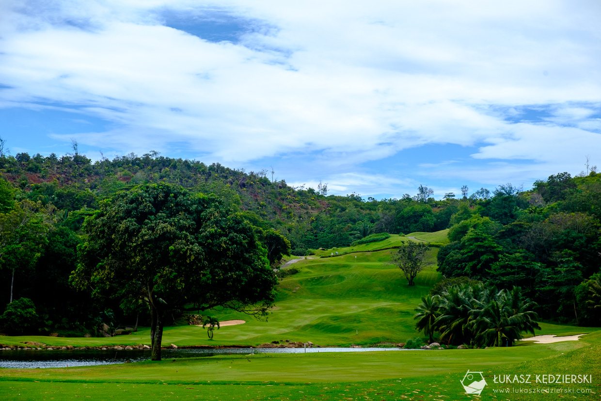 Spakowaliśmy plecak (parasol i deszczówki) i pojechaliśmy na plażę Anse Georgette. Aby móc podziwiać tę plażę, trzeba dzień wcześniej zarezerwować miejsce na liście (bezpłatnie) w znajdujący się tam hotelu, bo jest ograniczona ilość odwiedzających a ścieżka prowadzi przez prywatne pole golfowe.