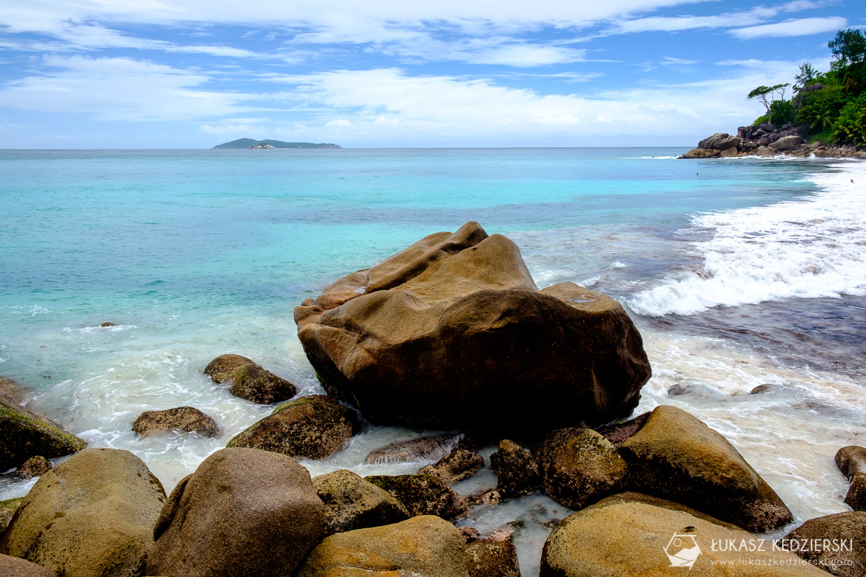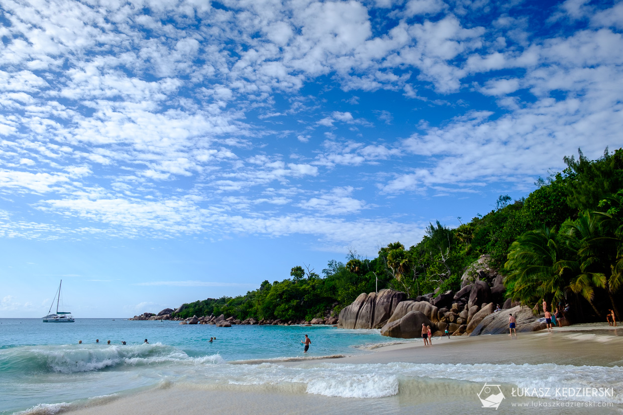 Anse Georgette podobno znajduje się na liście najpiękniejszych plaż na świecie! Nie nam to oceniać, ale jedno jest pewne – jest tu pięknie. Idealnie biały i miałki piasek, przepiękne kamienie, doskonałe widoki i co najważniejsze – mało ludzi. Nie ma tu żadnego hotelu, budki, czy knajpki. Nie ma leżaków, turystycznej infrastruktury i hałasu. Jest cisza i spokój. Całkiem spore fale i dosyć mocny prąd także wchodząc do wody trzeba uważać. Co tu więcej pisać – pomimo że mieliśmy w planach jeszcze coś dzisiaj zrobić, to zostaliśmy tu na cały dzień. Kilka zdjęć na zachętę i króciutki filmik.