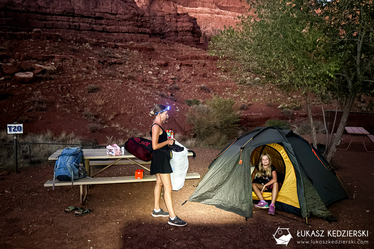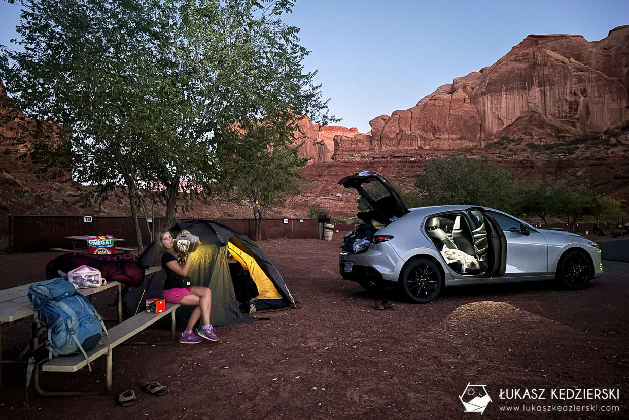 Parki narodowe w USA są olbrzymie. Często po przekroczeniu granicy parku jedzie się jeszcze godzinę lub i dłużej, aby dojechać do centrum parku, głównych atrakcji, szlaków, tras i punktów widokowych. Natomiast chyba wszystkie, a przynajmniej w tych, których my byliśmy, parki narodowe mają na swoim terenie doskonale zorganizowane pola kempingowe położone w samym centrum. Zatem planując zobaczyć wschód słońca w Grand Canyon lub wystartować wcześnie rano na trasy w Sequoia NP musielibyśmy wstawać dużo wcześniej, bo do przejechania było jeszcze sporo kilometrów. Dodatkowo my bardzo lubimy spędzać czas pod namiotem, blisko natury, w ciekawych miejscach.