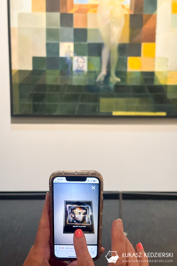 Salwador Dali słynął z wielu perspektyw i „chowania” pomysłów, których na pierwszy czy nawet drugi rzut oka nie widać w obrazie. Przy niektórych dziełach są umieszczone kody QR, które warto zeskanować telefonem. Przeniosą nas na odpowiednie strony, które pomagają dostrzec różne elementy obrazów! Działa to rewelacyjnie!