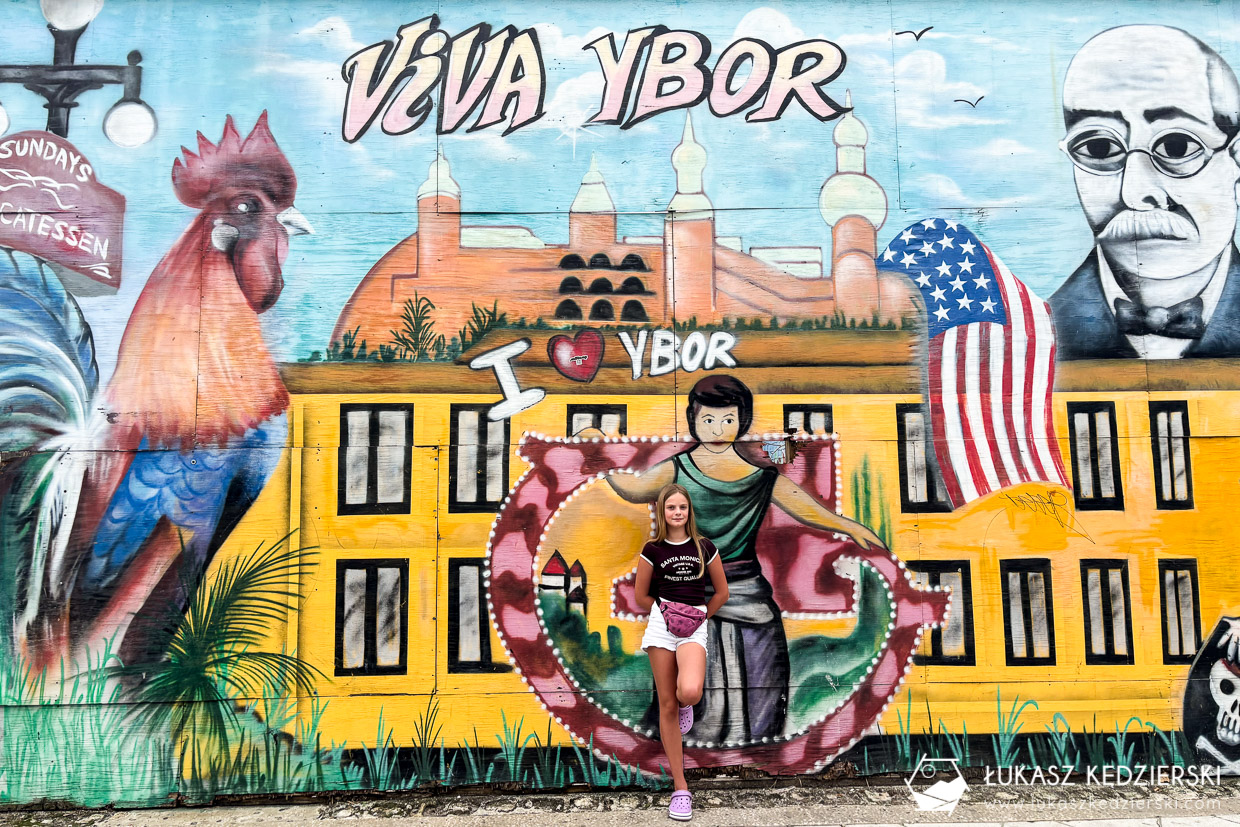 Tampa i historyczna dzielnica Ybor City. Nie do końca byliśmy przekonani czy tu przyjechać. Mieliśmy po drodze do St. Pete, więc postanowiliśmy dać szansę tej kubańskiej dzielnicy. Początek to najstarsza w mieście restauracja kubańska Columbia Restaurant prowadzona przez tą samą rodzinę od 1905 roku. Wystrój na zewnątrz i w środku przyciąga uwagę, jednak bez wcześniejszej rezerwacji, nie dostaniecie stolika.