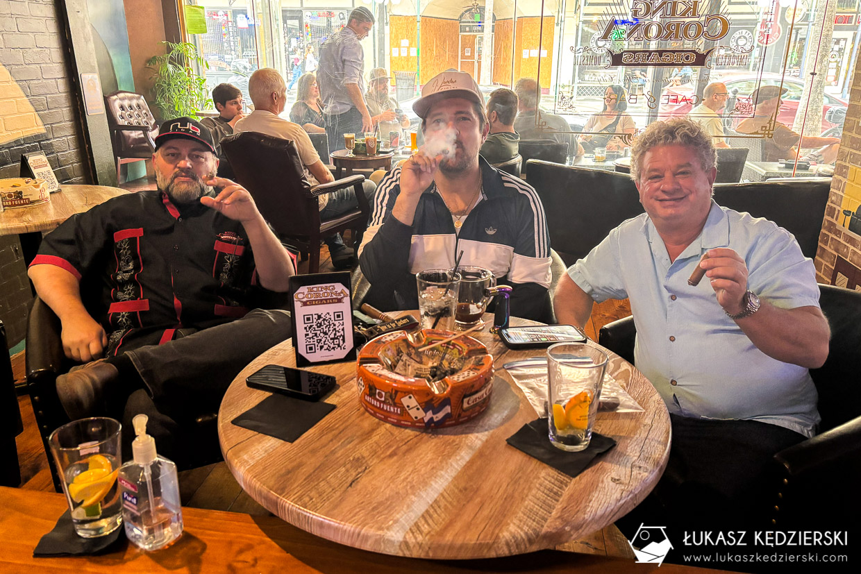 Główna ulica ciągnie się dalej, a wzdłuż niej piękna architektura i zapach cygar w powietrzu. Pomimo że byliśmy tu w niedzielne popołudnie, to było pustawo. Jedynie w barach przesiadywali głównie mężczyźni ze szklaneczką czegoś chłodnego i z procentami, palący cygara. Miejsce ma swój bardzo fajny klimacik i nie wiem, czy nie podobało nam się tu bardziej niż Little Havana w Miami.