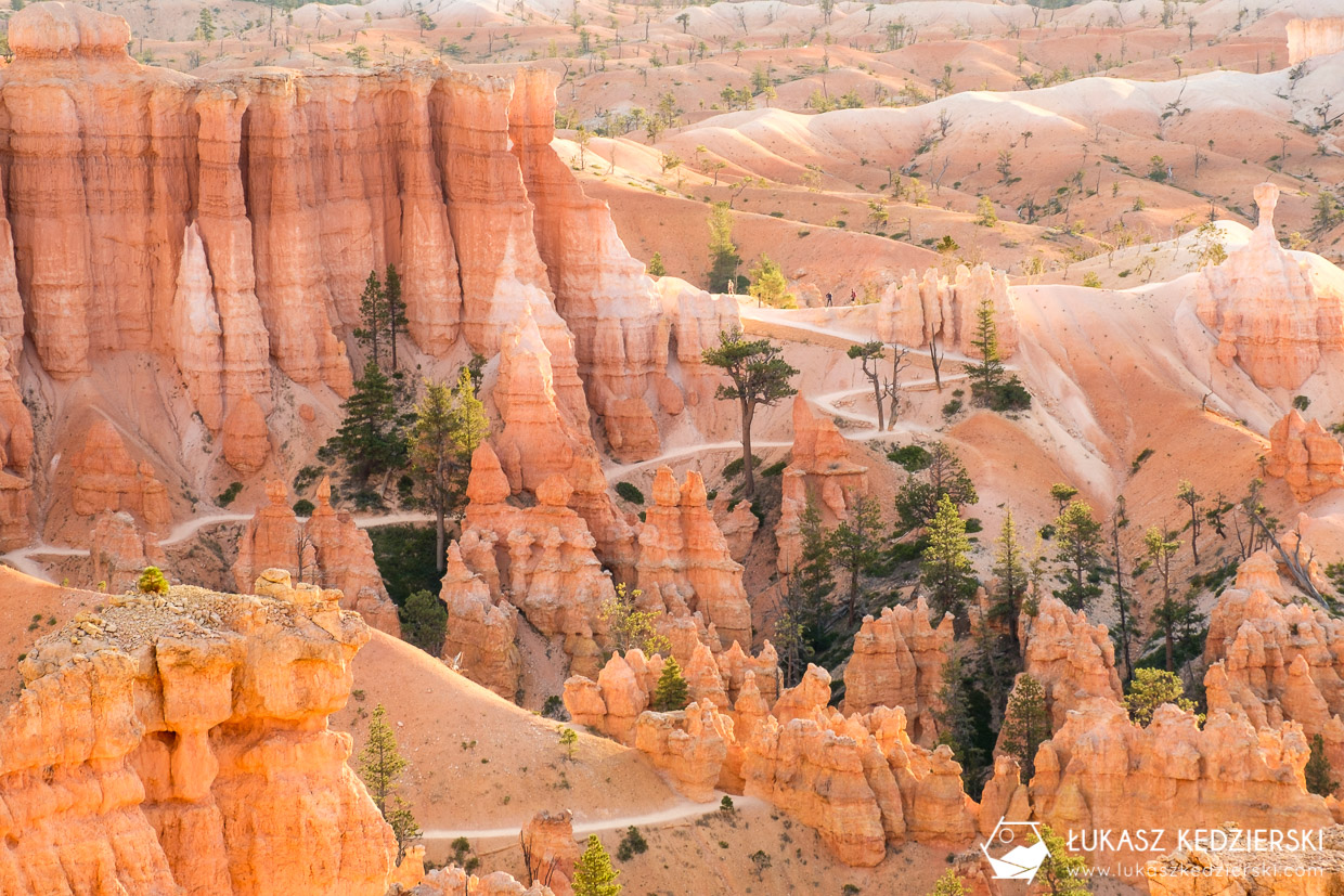 Chyba nie ma sensu, abym pisał, że praktycznie co krok, to magiczne miejsce lub niesamowity widok. Podobnie jak w Grand Canyon dopiero zejście na dno, pokazuje w całej okazałości piękno tego miejsca. Chodzimy niby krasnale pomiędzy skalnymi formacjami o różnych kształtach i kolorach. Hoodoo to iglice skalne tak bardzo charakterystyczne dla tego miejsca. Czasami wyglądają jak kolorowe grzybki, innym razem tworzą całe amfiteatry. Błądzimy pomiędzy mniejszymi kanionami szczelinowymi i podziwiamy okna lub łuki skalne. Oj to iście magiczne miejsce i zdecydowanie polecamy wybrać się na pętlę Peek-A-Boo Loop, która wbrew temu co mówią strażnicy, nie jest trudna.