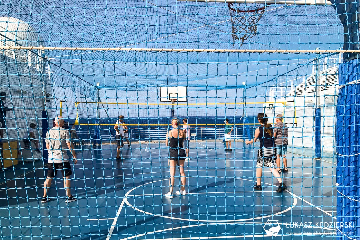 • zajęcia sportowe: zajęcia fitness, gimnastyka, gry zespołowe (na statku jest boisko do kosza), joga, ćwiczenia,