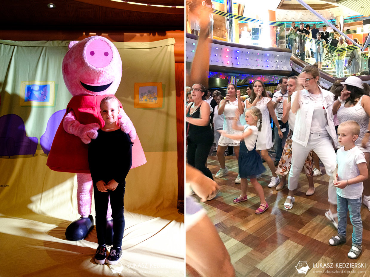 Byliśmy zaskoczeni ilością atrakcji, jakie znajduje się na statku. Praktycznie od samego rana, do późnych godzin nocnych, można brać udział w jakiejś zorganizowanej atrakcji, wydarzeniu. Wszystko jest doskonale zorganizowane a prowadzący, trenerzy, artyści, muzycy dają z siebie 150%. Każde z wydarzeń i atrakcji, na jakich byliśmy, były na absolutnie bardzo wysokim poziomie.