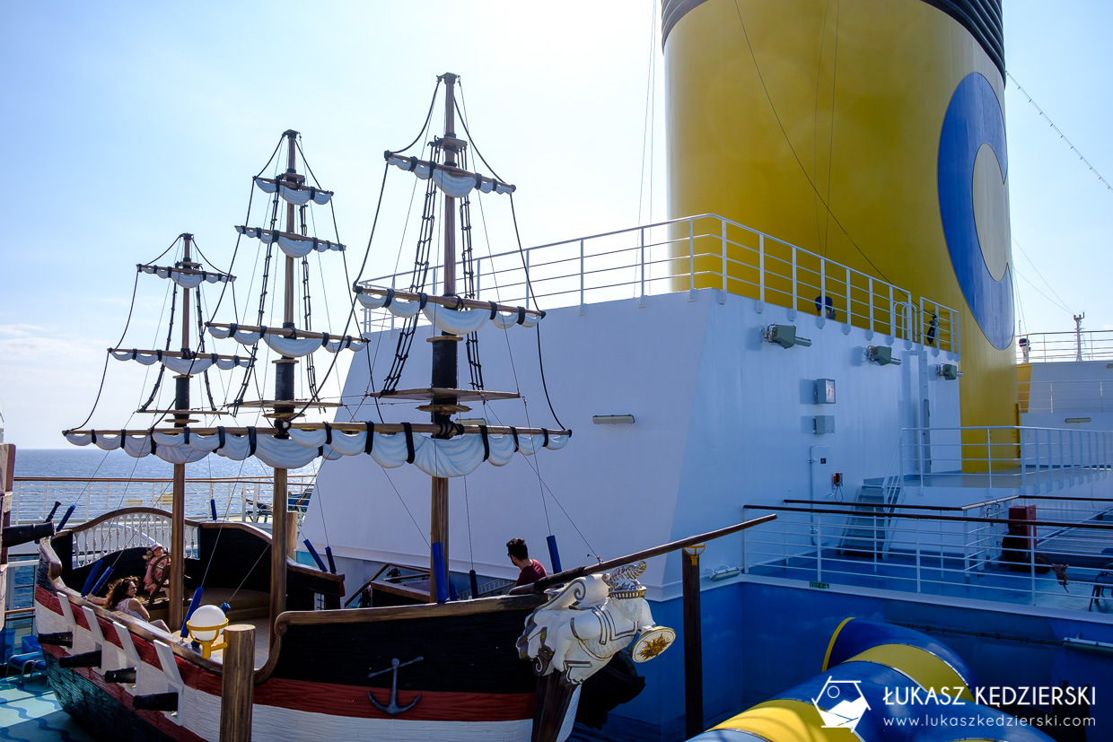 Pod koniec września zostaliśmy zaproszeni przez firmę Costa – mieliśmy zobaczyć i doświadczyć, jak wygląda rejs wielkim statkiem wycieczkowym. W Savonie weszliśmy na pokład Costa Diadema, którym przez tydzień pływaliśmy po Morzu Śródziemnym. Poznawaliśmy atrakcje na statku, chodziliśmy do teatru, opalaliśmy się na leżakach, pływaliśmy w basenie, obserwowaliśmy graczy w kasynie, chodziliśmy na zakupy, tańczyliśmy i przede wszystkim świetnie się bawiliśmy. W trakcie naszego rejsu relacjonowaliśmy naszą wycieczkę na Facebooku oraz Instagramie. Zadawaliście mnóstwo pytań o koszty, o warunki, o atrakcje, o trasę itd. Obiecaliśmy, że przygotujemy bardzo szczegółowy artykuł odpowiadający na wszelkie pytania, tak, abyście mogli dowiedzieć się, jak wygląda taki rejs, jakie są dostępne atrakcje na statku oraz z jakimi kosztami trzeba się liczyć.