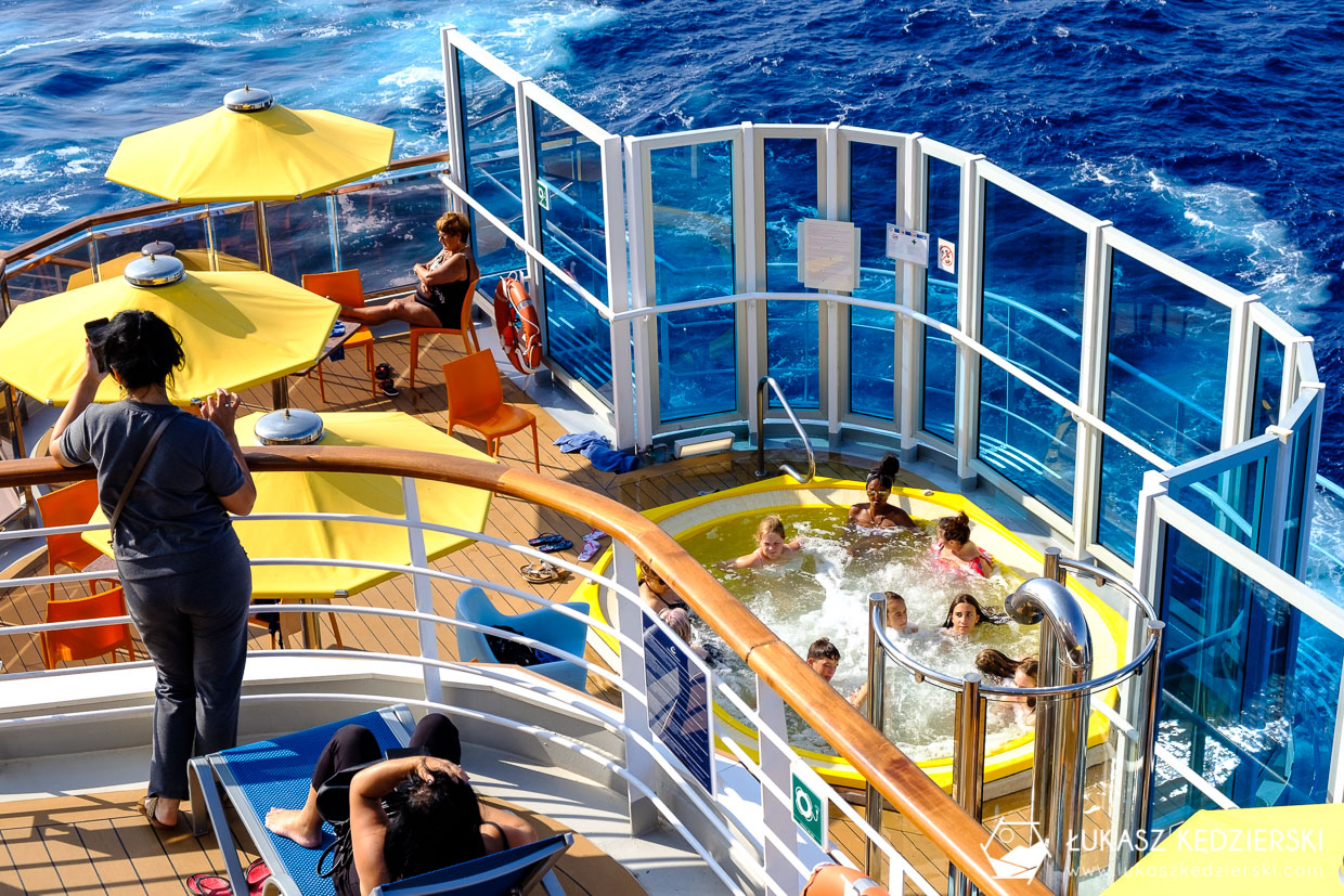 • Jacuzzi. Na otwartych pokładach znajdziemy kilka jacuzzi, gdzie z pięknym widokiem na morze, możemy posiedzieć w ciepłych bąbelkach.