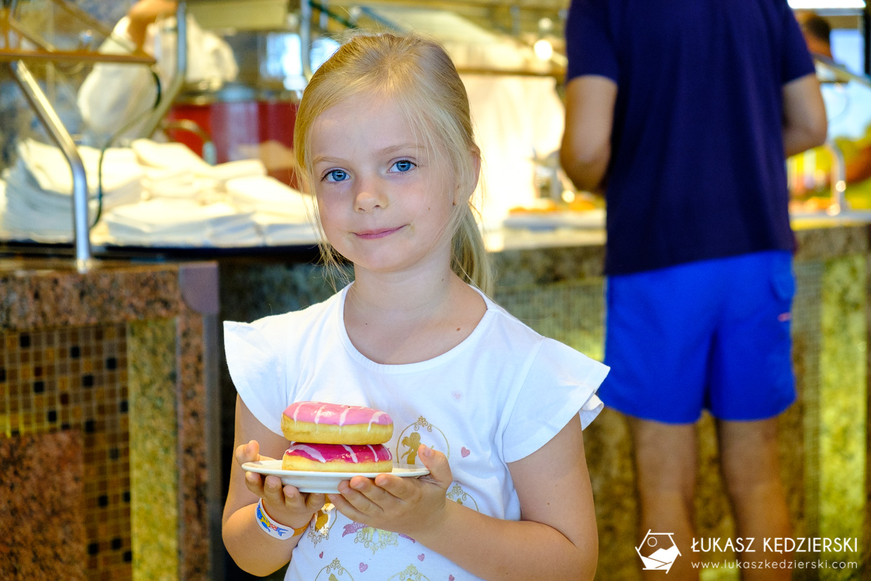 Podczas posiłków, zależnie od posiadanego pakietu na napoje, można było zamawiać u kelnera dodatkowo pozycje z menu lub skorzystać z ogólnodostępnych napoi i wody z dystrybutorów. Jedno jest pewne – nikt tu głodny nie chodzi.